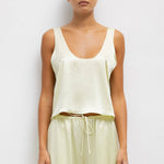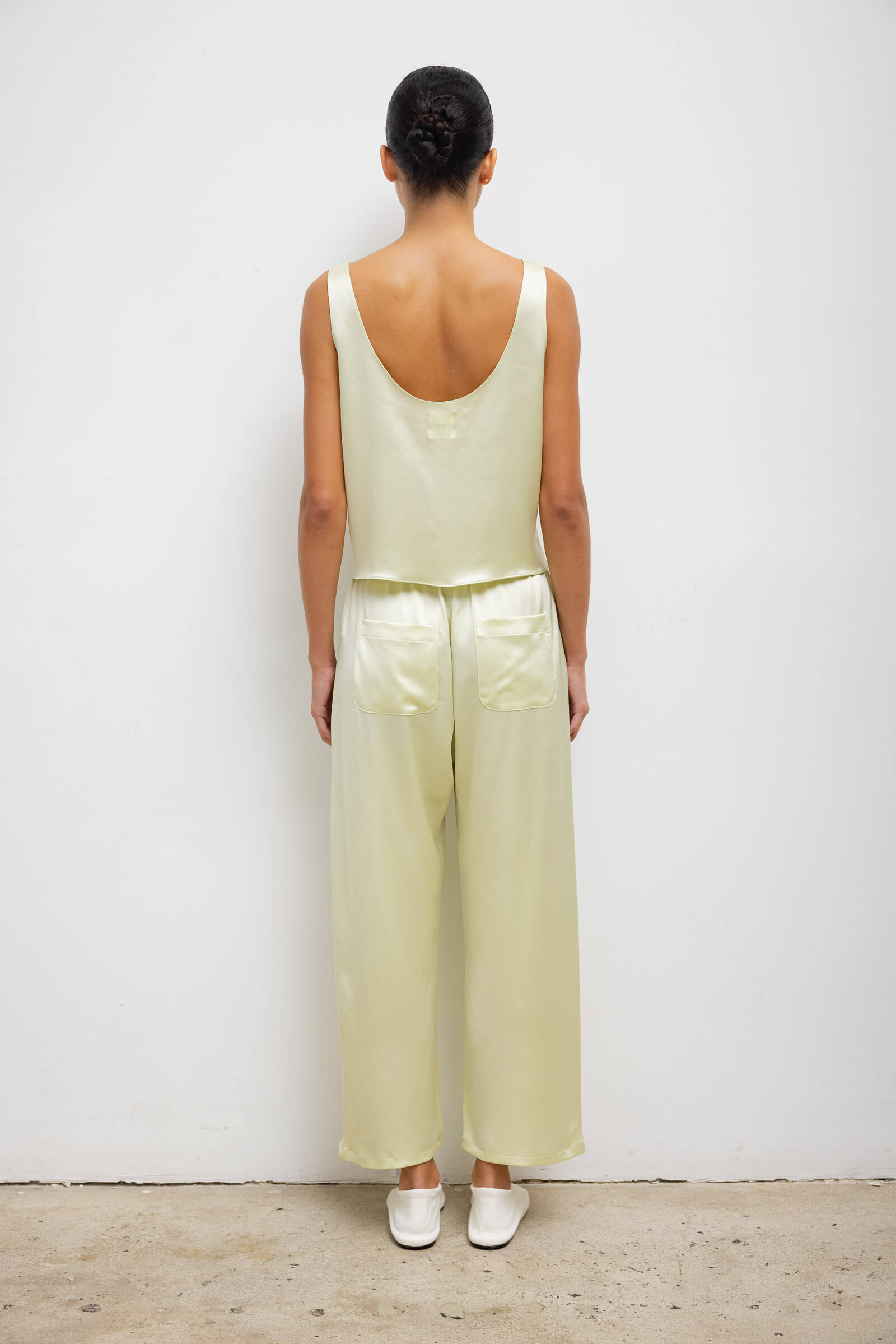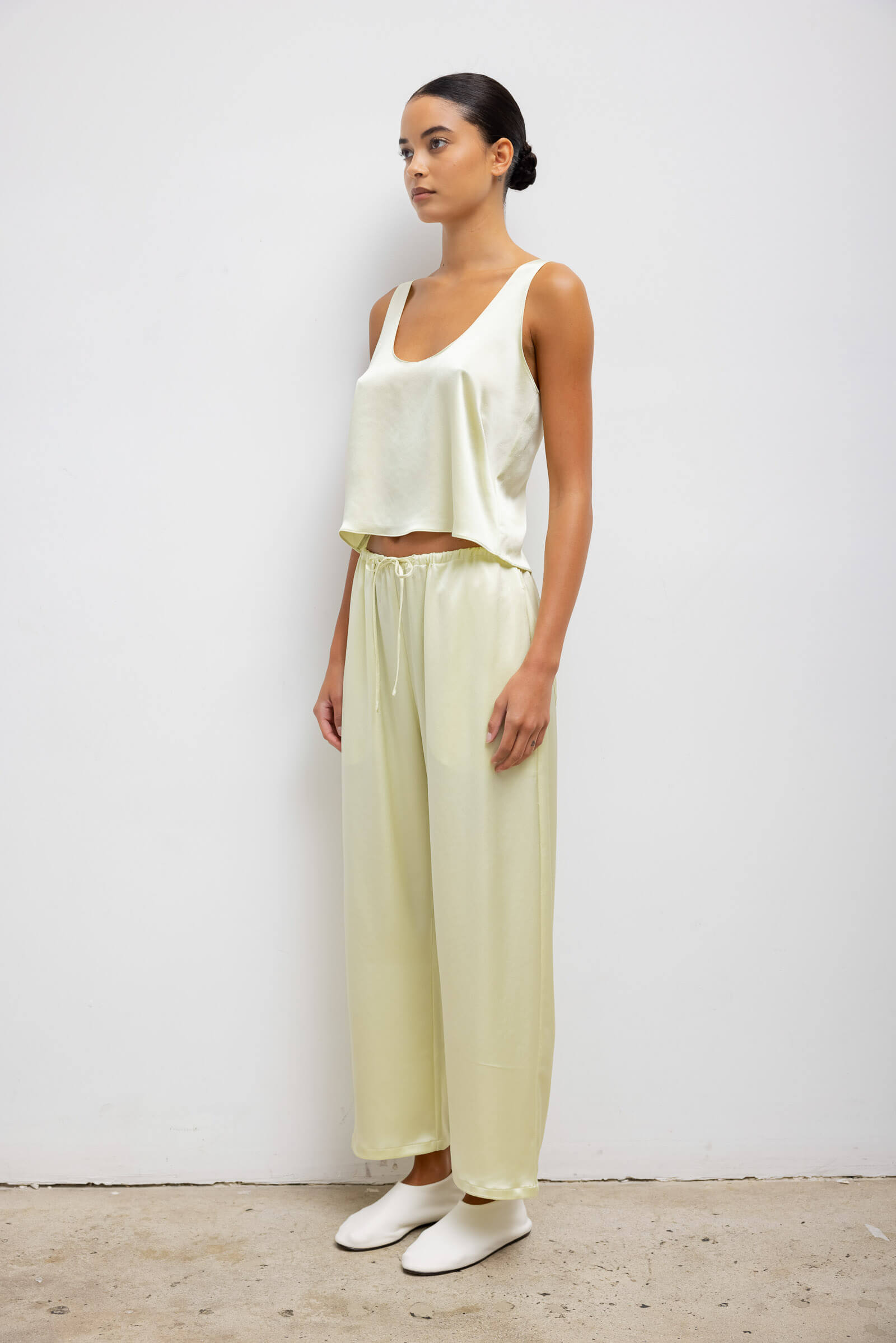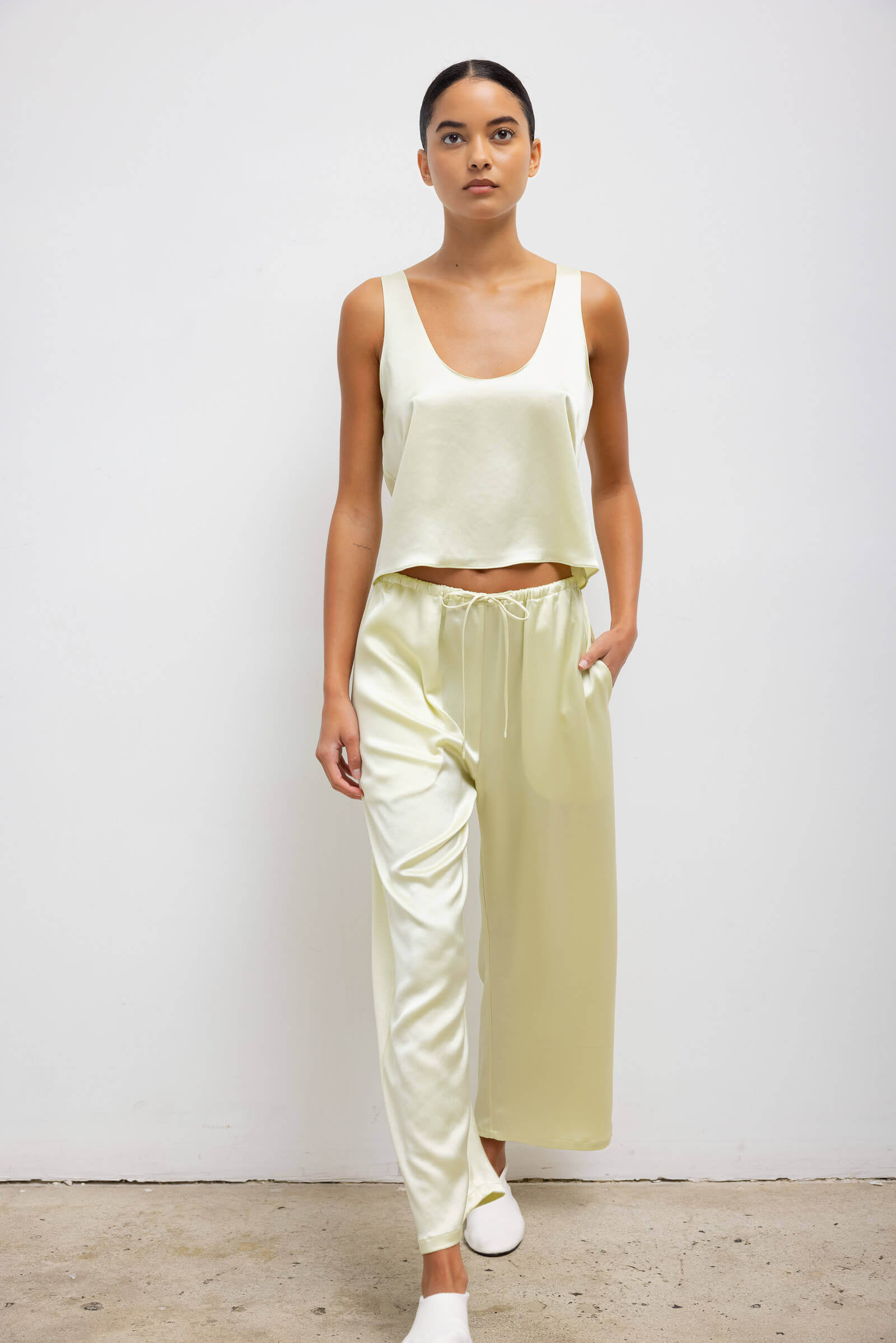 Cut in our best-selling, Japanese-crafted Barb Satin, the Barb Scoop Tank features a wide scoop neckline, medium width straps, and a perfectly cropped length. Match it with The Barb Crop Drawstring Pant or mix it with any cotton Classic.