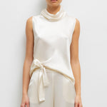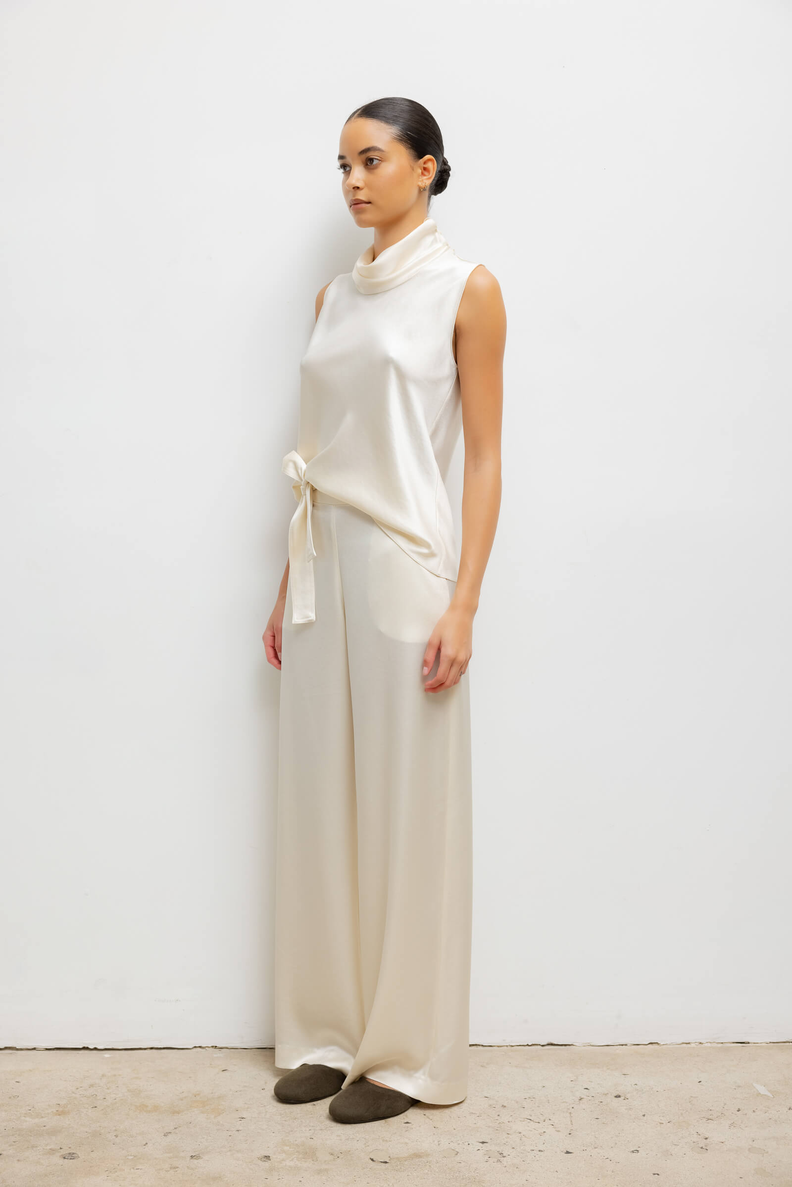 Cut in our Japanese-crafted Barb Satin, The Barb Sleeveless Cowl Neck is a classic shell silhouette, featuring a perfectly draped cowl neckline and tuckable length. Make it a matching set with any Barb bottom.