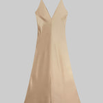 Cut in our best-selling, Japanese-crafted Barb Satin, The Barb Slip Dress is a dramatic maxi silhouette, featuring an open back, adjustable thin straps, and a deep V neckline.