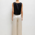Cut in our Japanese-crafted satin, The Barb Wide Leg Pant is our bestselling option for everyday elegance. This easy pull-on silhouette features a thin elastic mid-rise waistband and a relaxed, perfectly draped wide leg.
