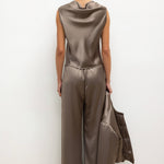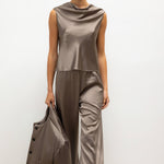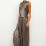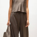 Cut in our Japanese-crafted Barb Satin, The Barb Wide Leg Pant is an easy pull-on silhouette that features a thin elastic mid-rise waistband and a relaxed, perfectly draped wide leg. Make it a matching set with any Barb top.