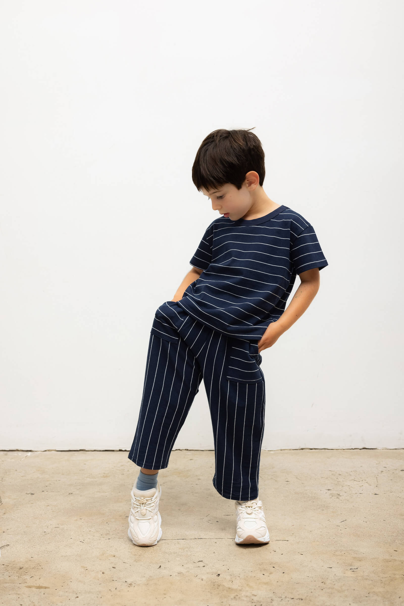 Our beloved Margo Tapered Pocket Pant  — shrunken down to match with your mini. These are easy, pull-on style pants with tiny side pockets and a comfortable elastic waistband. Make it a matching set with The Bebe Margo Tee.