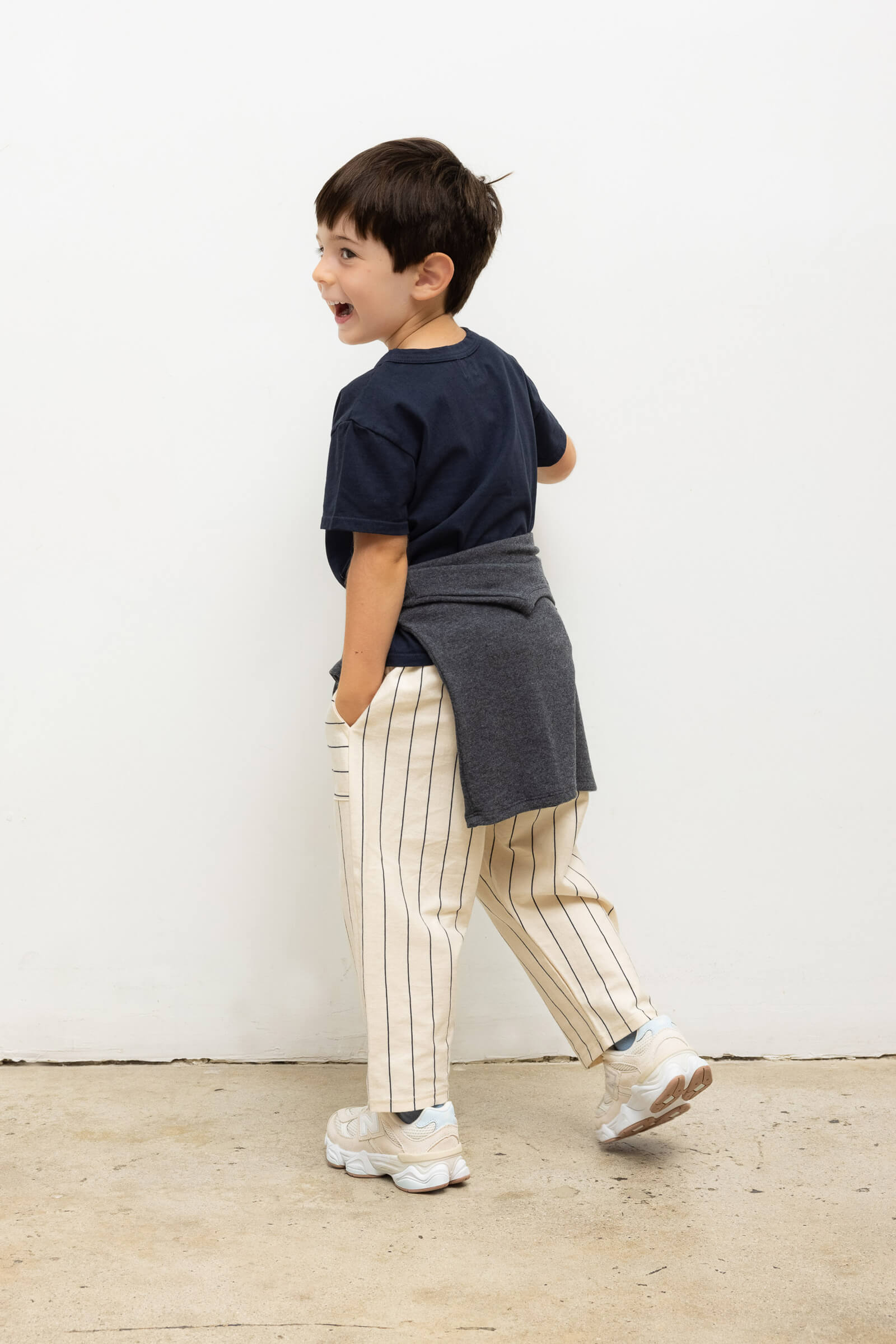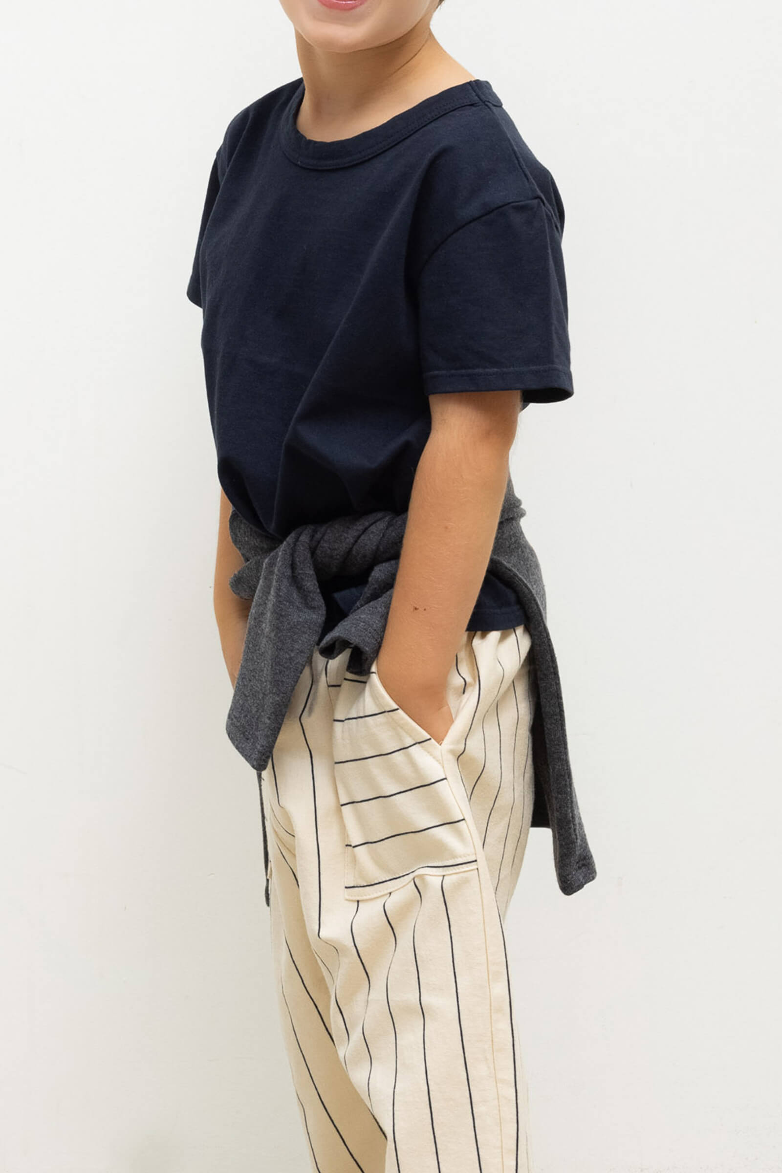 Our beloved Margo Tapered Pocket Pant  — shrunken down to match with your mini. These are easy, pull-on style pants with tiny side pockets and a comfortable elastic waistband. Make it a matching set with The Bebe Margo Tee.