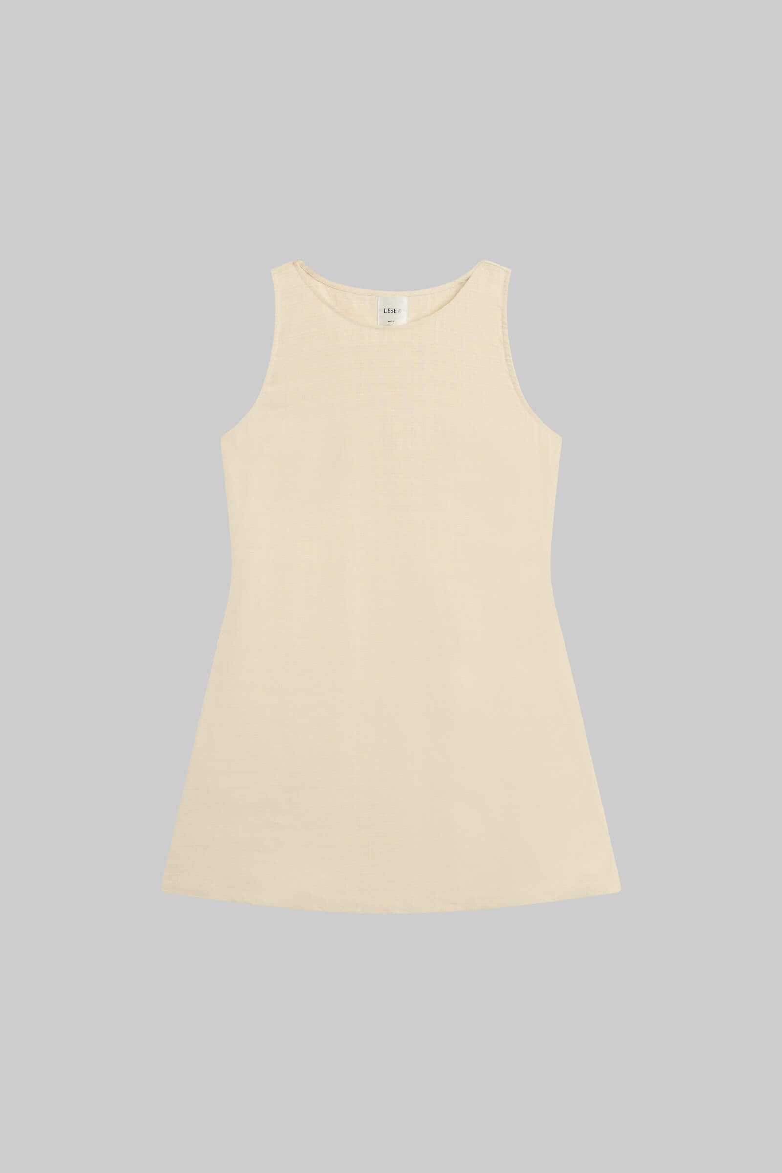 Cut in our luxe Belle Linen, The Belle Mini Dress is a sleeveless mini with a soft boat neckline, A-line silhouette, and side slit pockets. Wear it as a dress by itself or as a top over The Belle Wide Leg Pant.