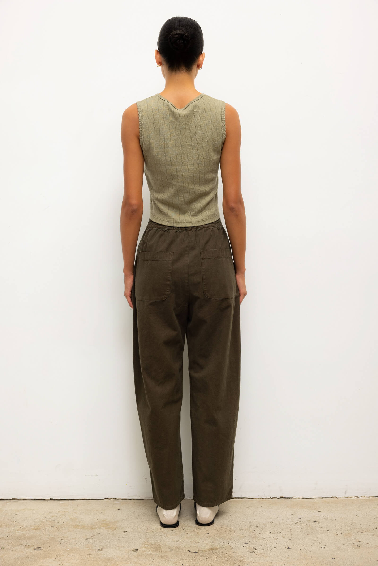 Cut in our new brushed Chloe Canvas, The Chloe Barrel Pant features a flattering rounded leg, cropped length, and a comfortable elastic waistband for all day wear. Make it a matching set with The Chloe Zip Jacket.