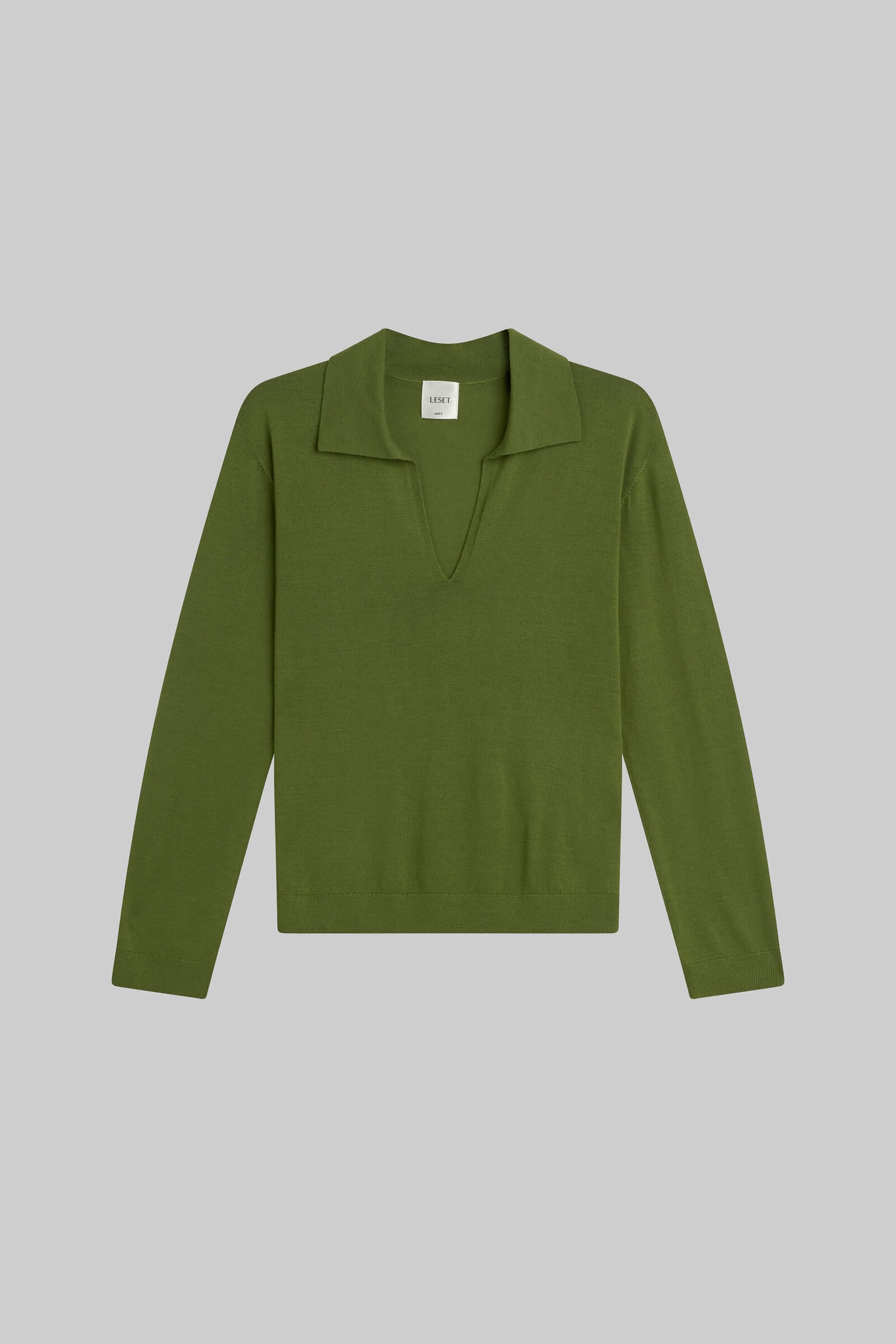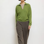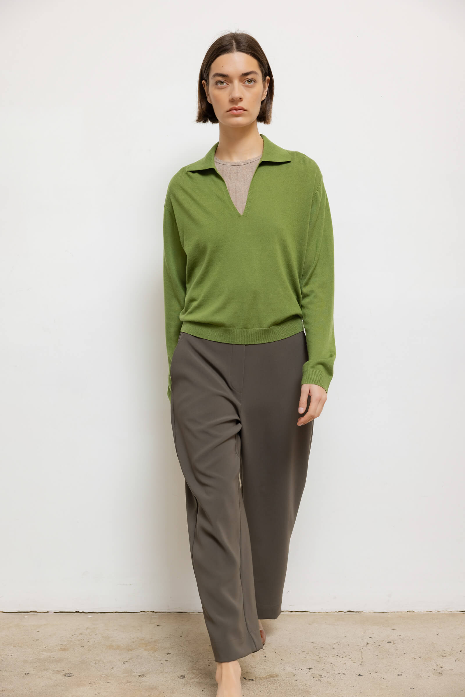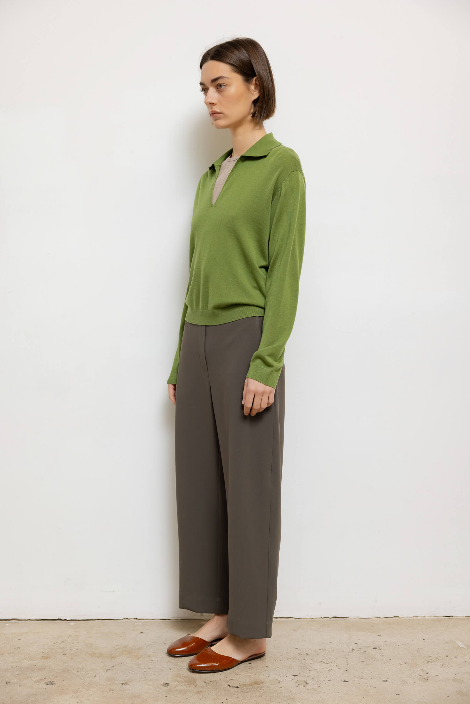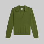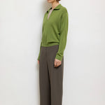 Knit in our Italian-crafted James Merino Wool, The James Fitted Polo features a mid V neckline, pointed collar, and delicate ribbed finisihings. We're styling this monochromatically with The Arielle Set in Olive.