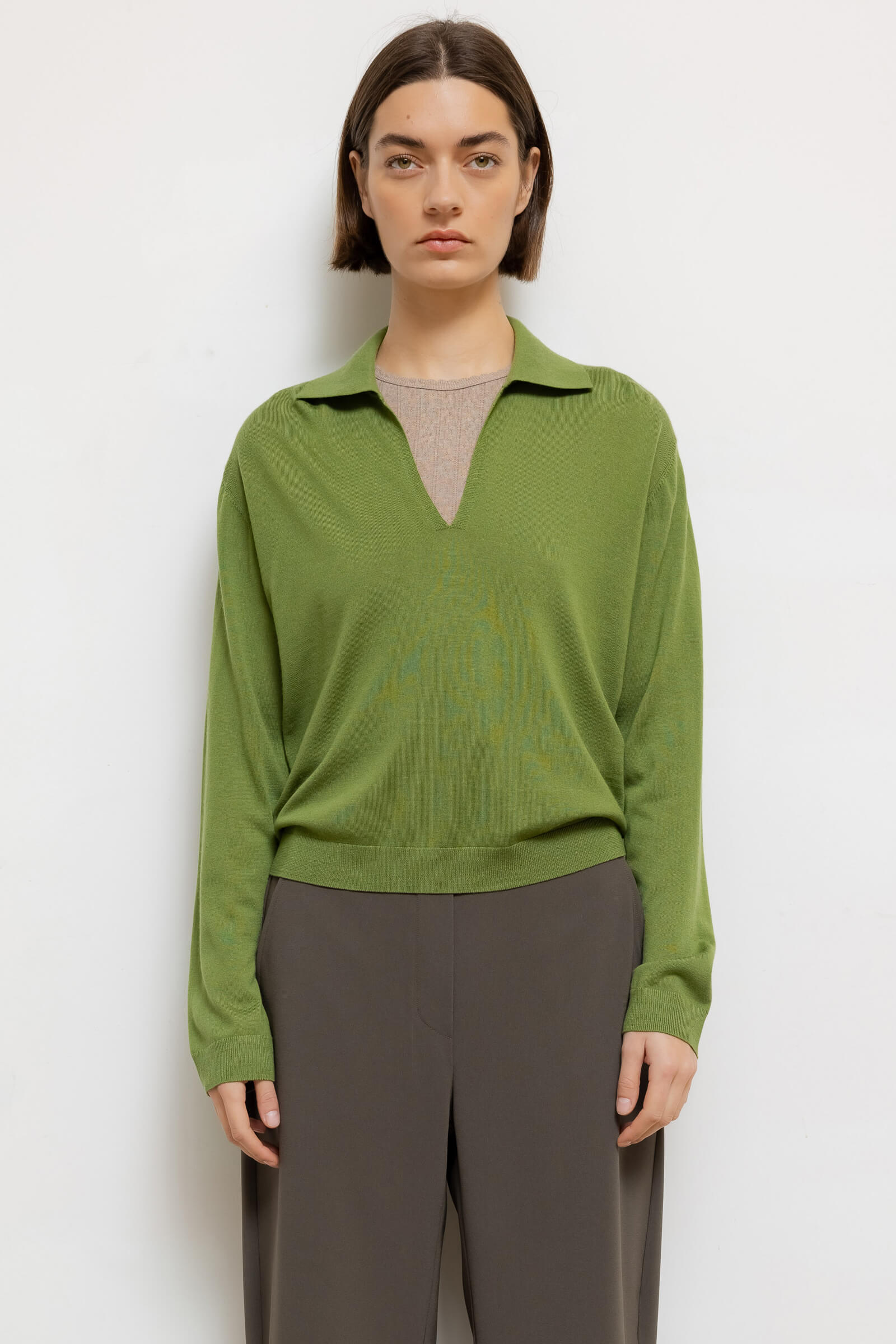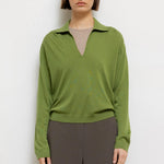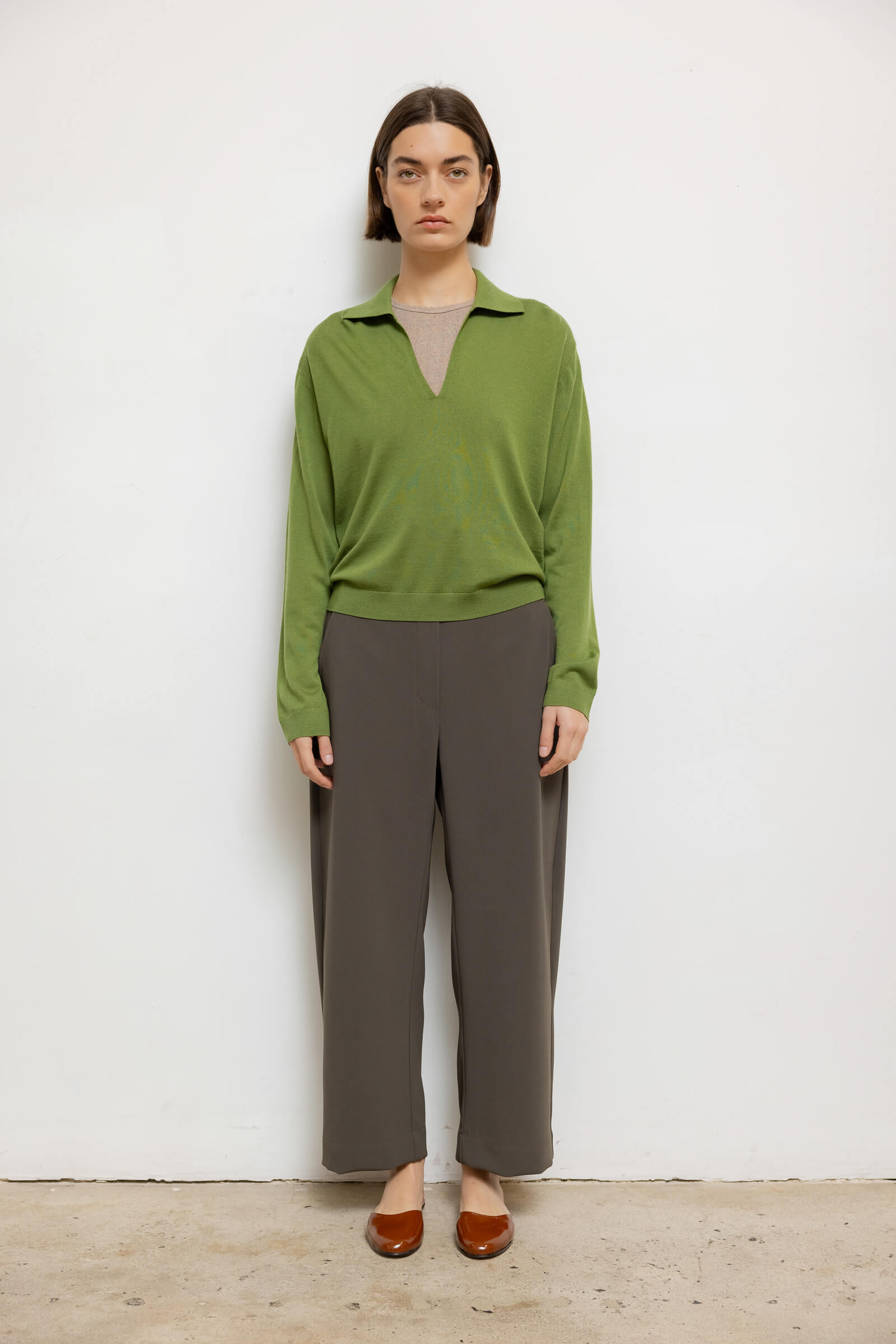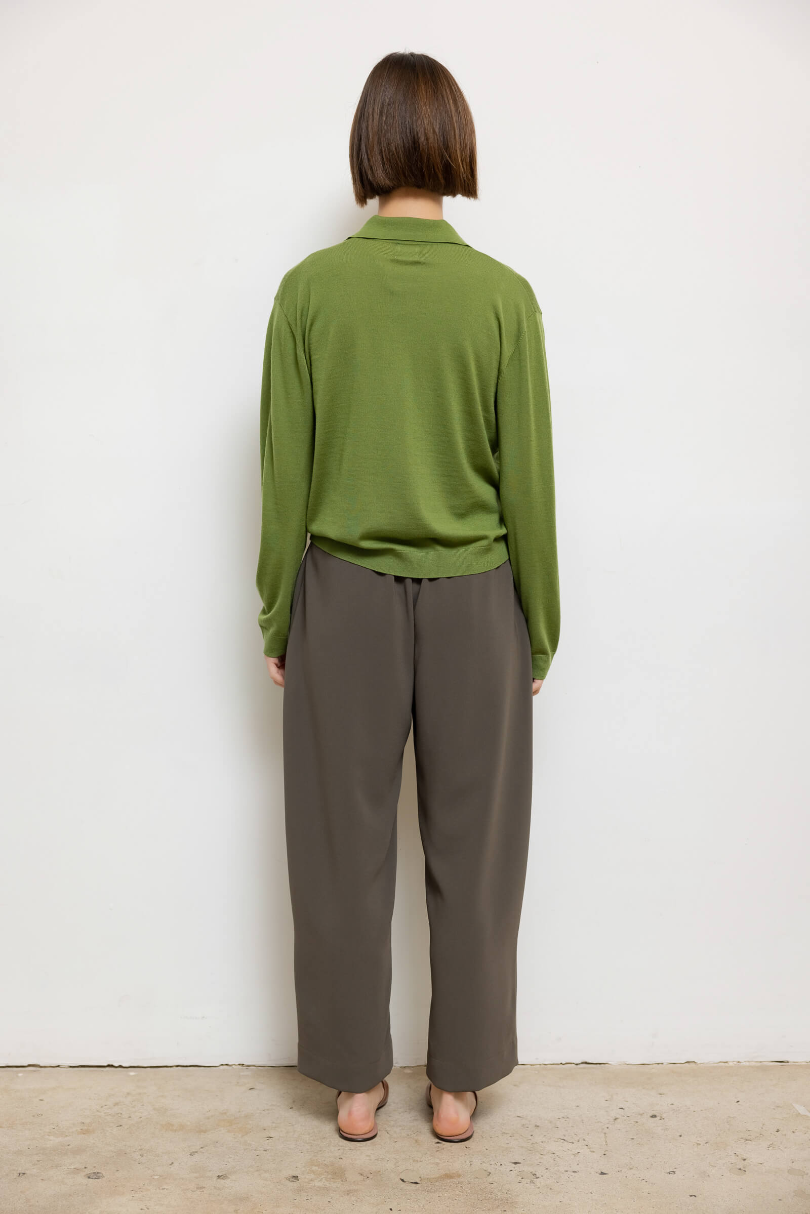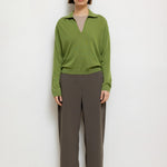 Knit in our Italian-crafted James Merino Wool, The James Fitted Polo features a mid V neckline, pointed collar, and delicate ribbed finisihings. We're styling this monochromatically with The Arielle Set in Olive.