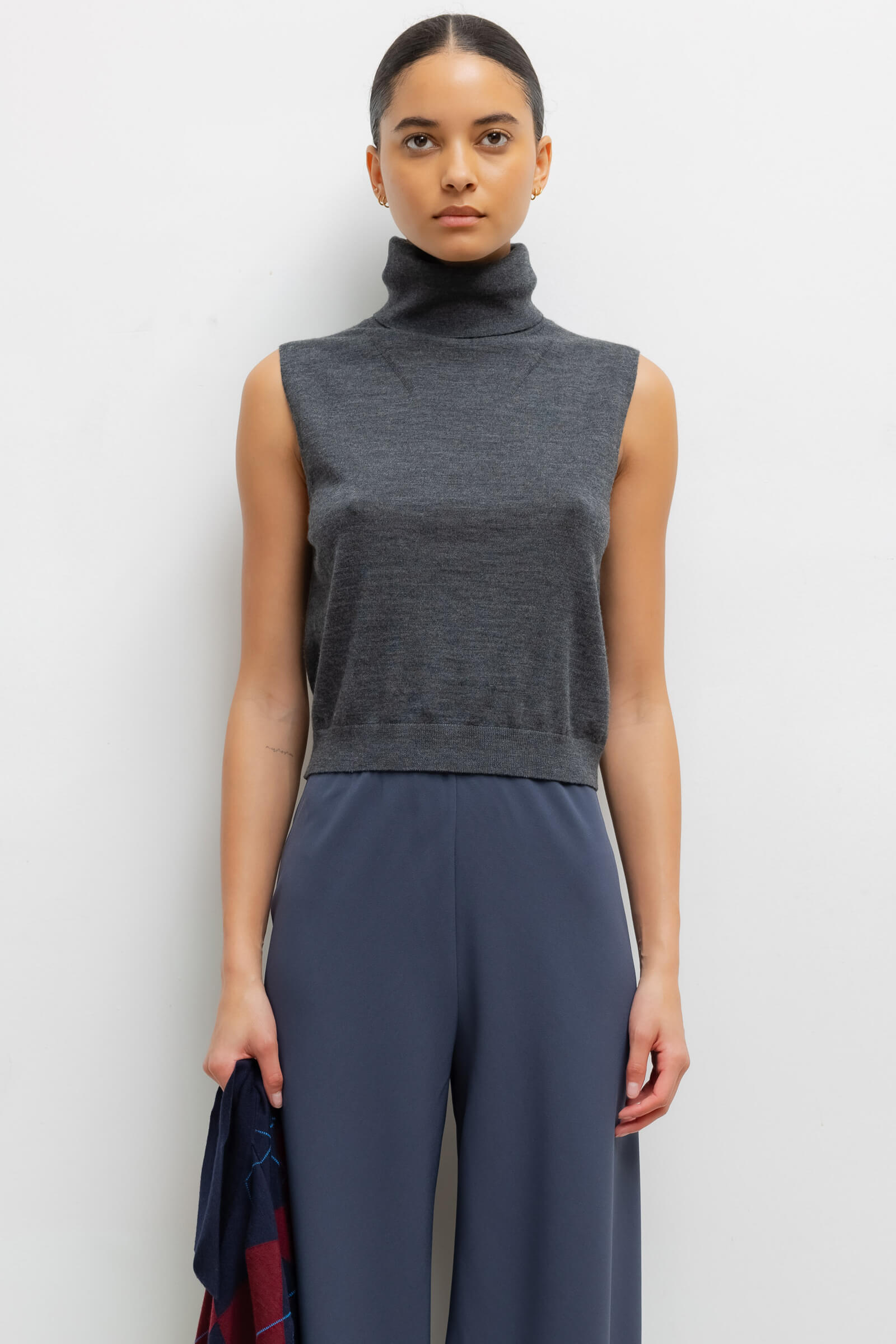 Knit in our Italian-crafted James Merino Wool, The James Sleeveless Turtleneck features a fitted silhouette, foldable turtleneck, and delicate ribbed finishings. We're layering this under everything this season - from heavier knits like The Zoe to The Jesse.