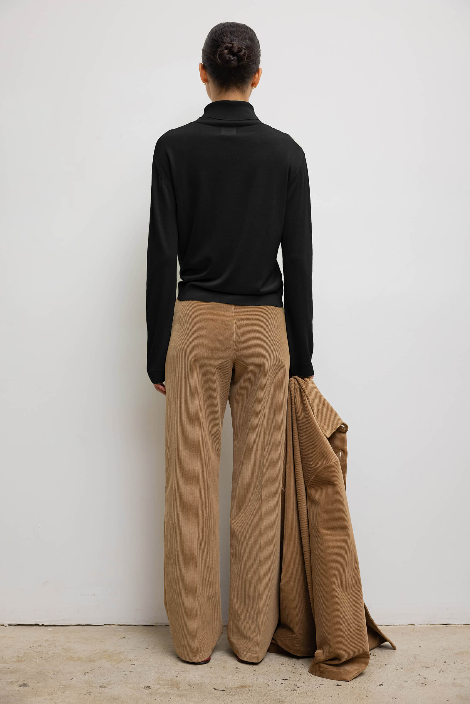 Knit in our ultra lightweight, 100% merino wool James Knit, The James Turtleneck is the quintessential layerable turtleneck, featuring a fold over neck, full length sleeves, and delicate ribbed finishes. Wear it by itself or underneath heavier knits and outwear.