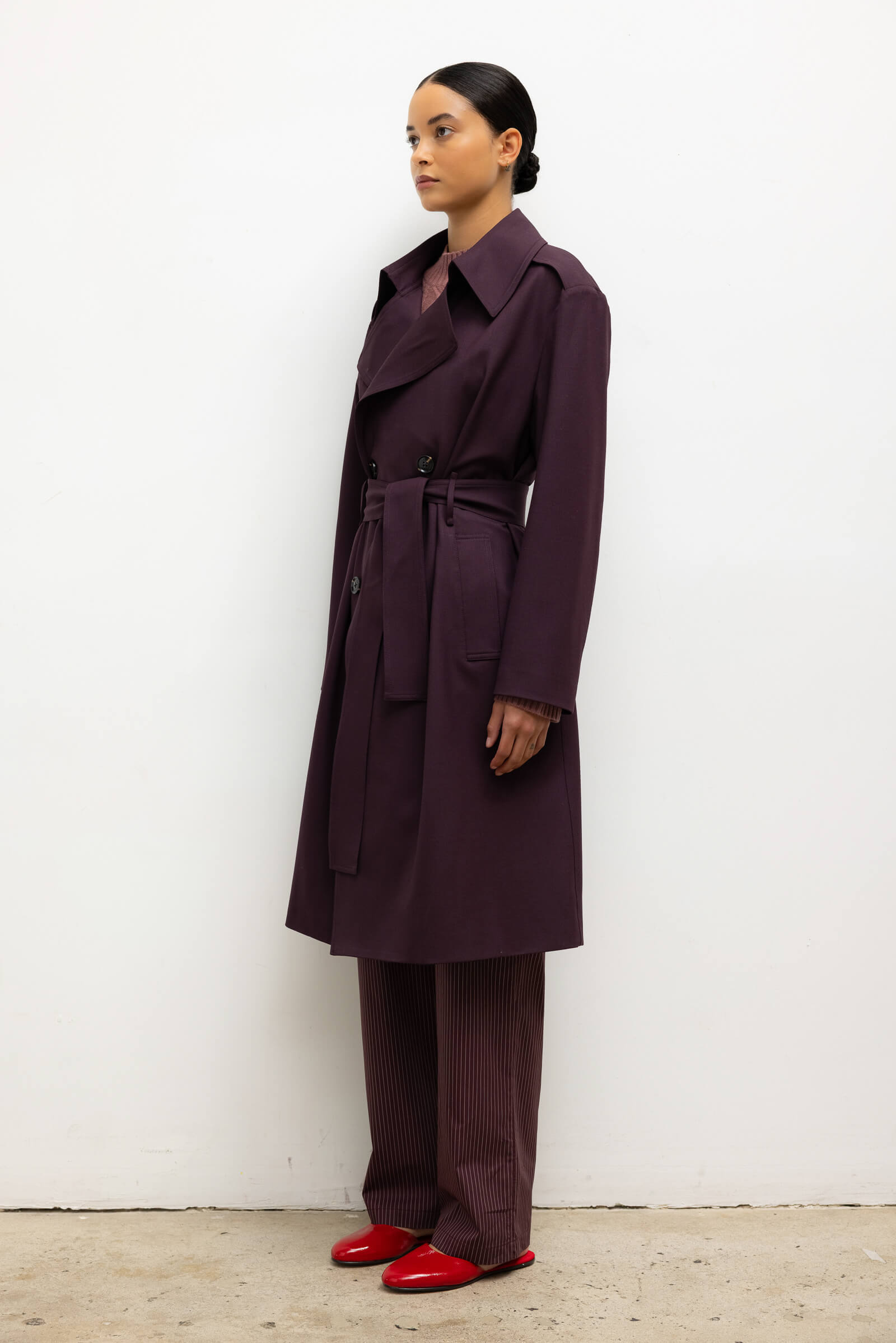 Cut in our RWS certified Jane Stretch Wool, The Jane Double Breasted Trench Coat features a notched lapel, adjustable tie waist, and the perfect midi length. Make it a matching set with The Jane Carpenter Pant.
