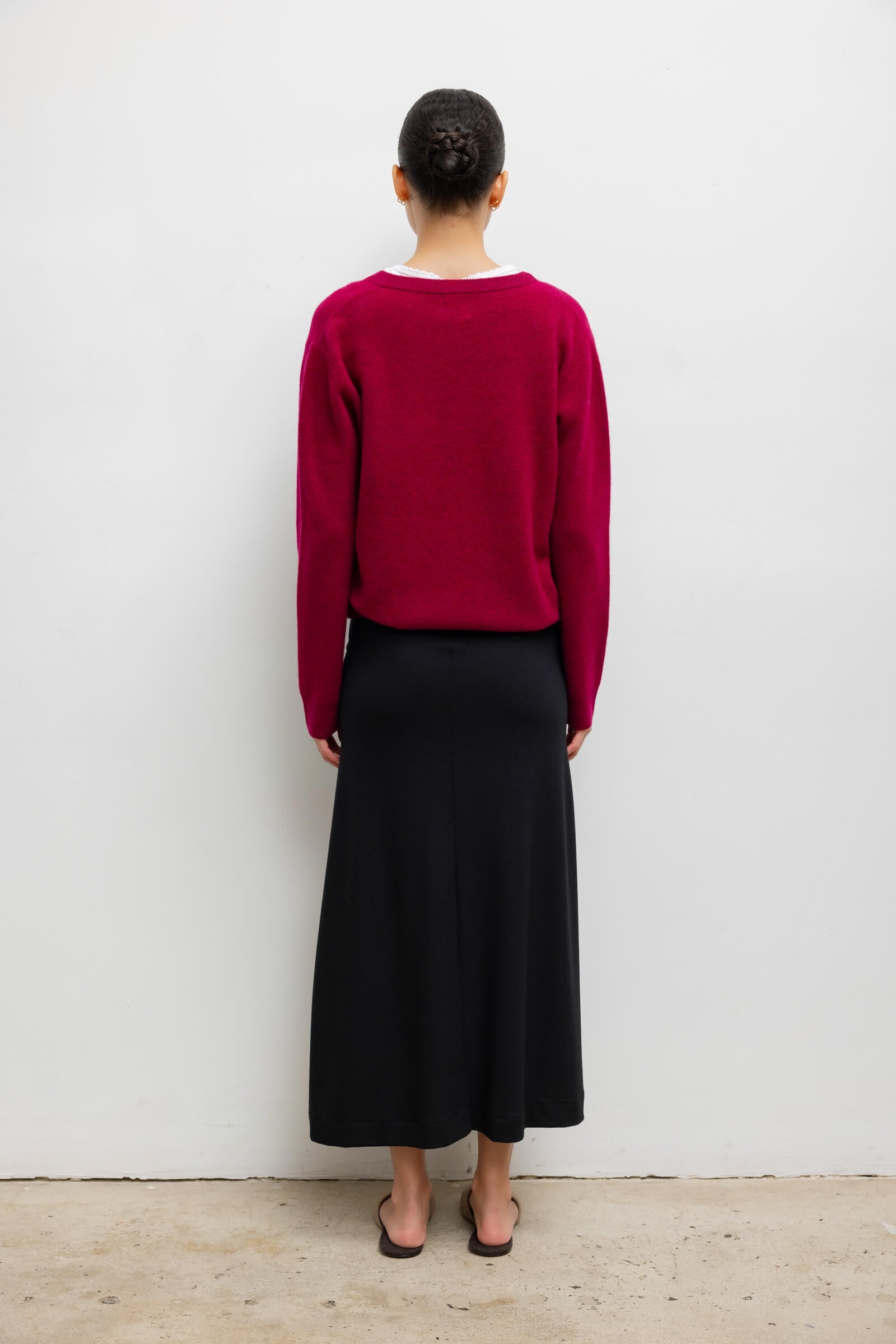 Knit in our new Jesse Felted Lambswool, The Jesse V Neck Pullover is a plush layering piece. This sweater is slightly oversized, featuring a V neckline and fine ribbed finishings.