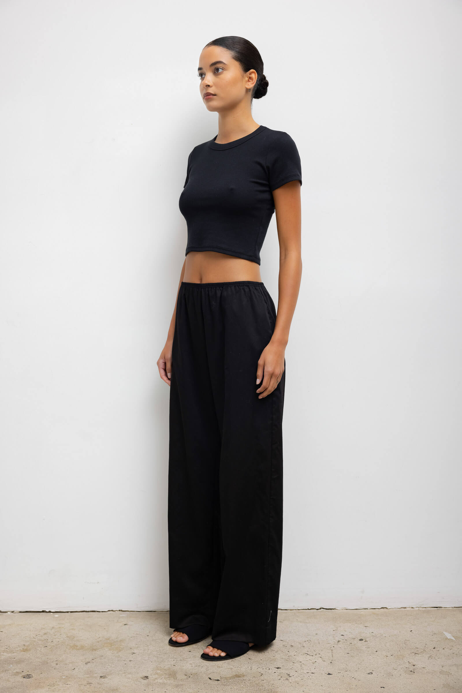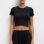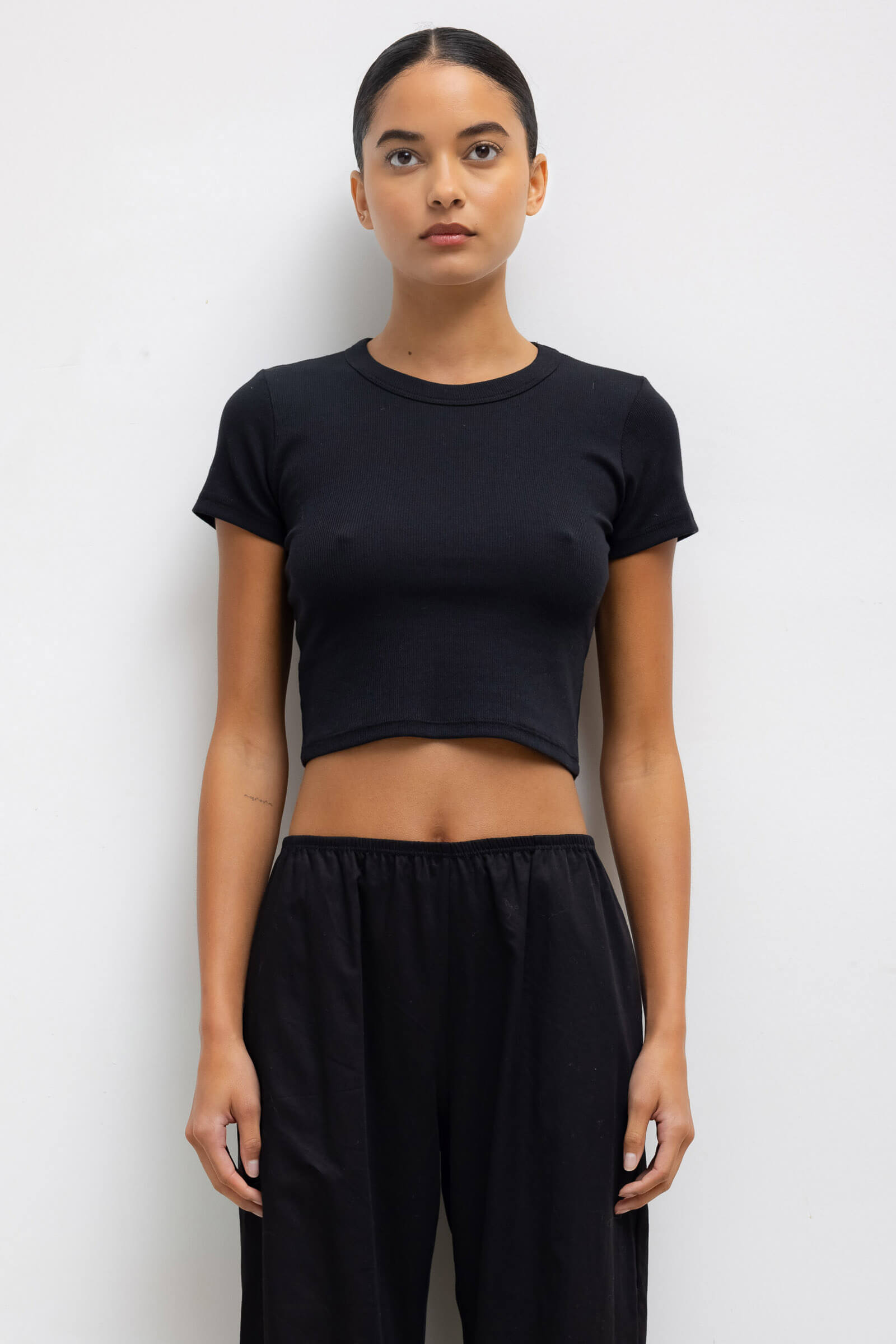 Cut in our anything but basic Kelly Cotton Rib,  The Kelly Crop Slim Fit Tee is the perfect high waist pant companion. Featuring a crew neckline, a just right cropped length, and clean, tailored finishing.