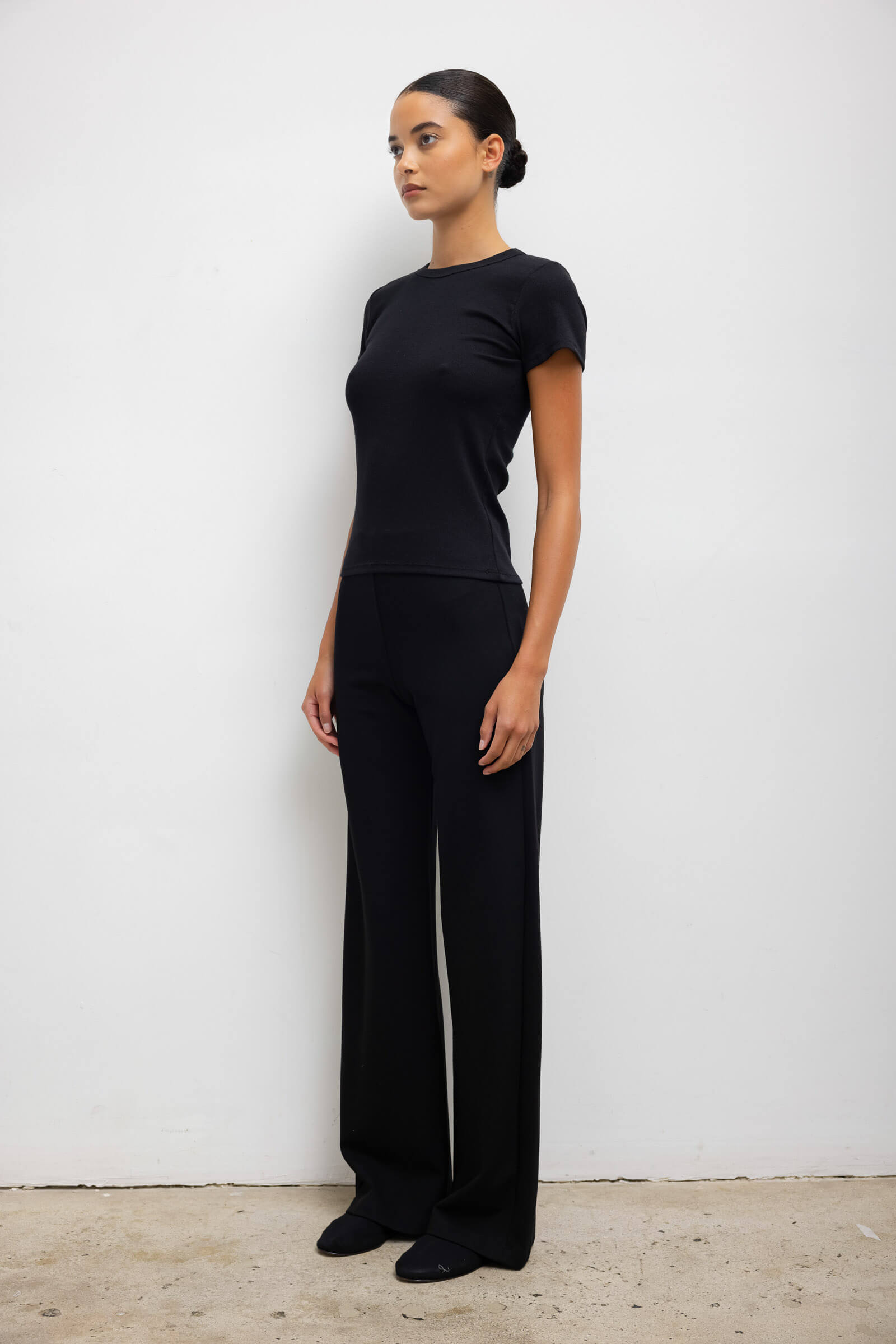 Cut in our anything but basic Kelly Cotton Rib,  The Kelly Slim Fit Tee is a figure-skimming crewneck, featuring tailored short sleeves and a full length.