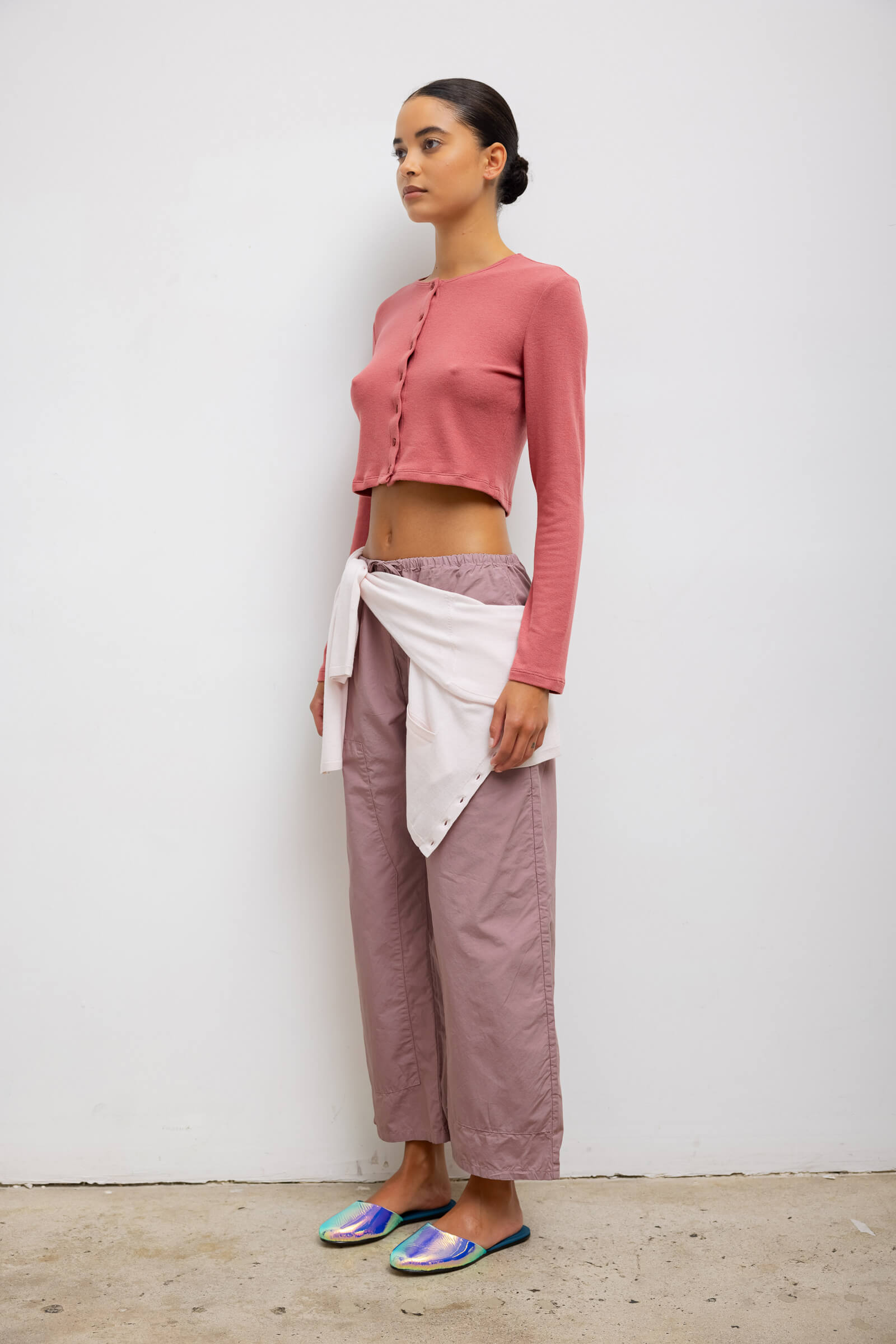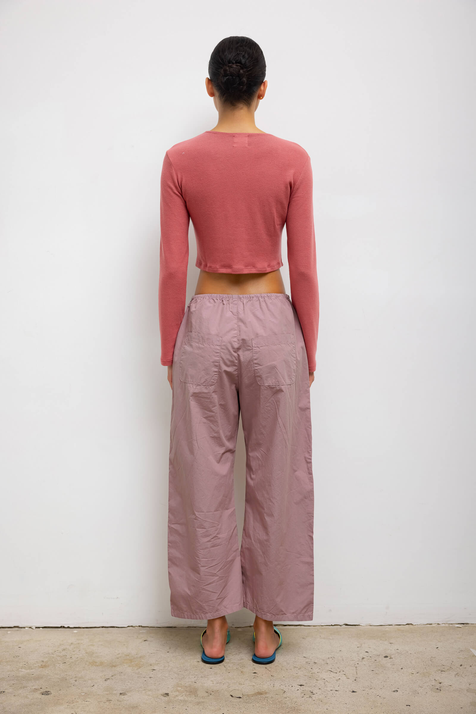 Cut in our garment dyed Kyoto Cotton, The Kyoto Carpenter Pant is a classic utility inspired trouser. This pull-on style pant features a baggy leg silhouette that hits at the ankle, with topstitched utility panels at front, an adjustable waistband, and patch pockets at back.
