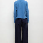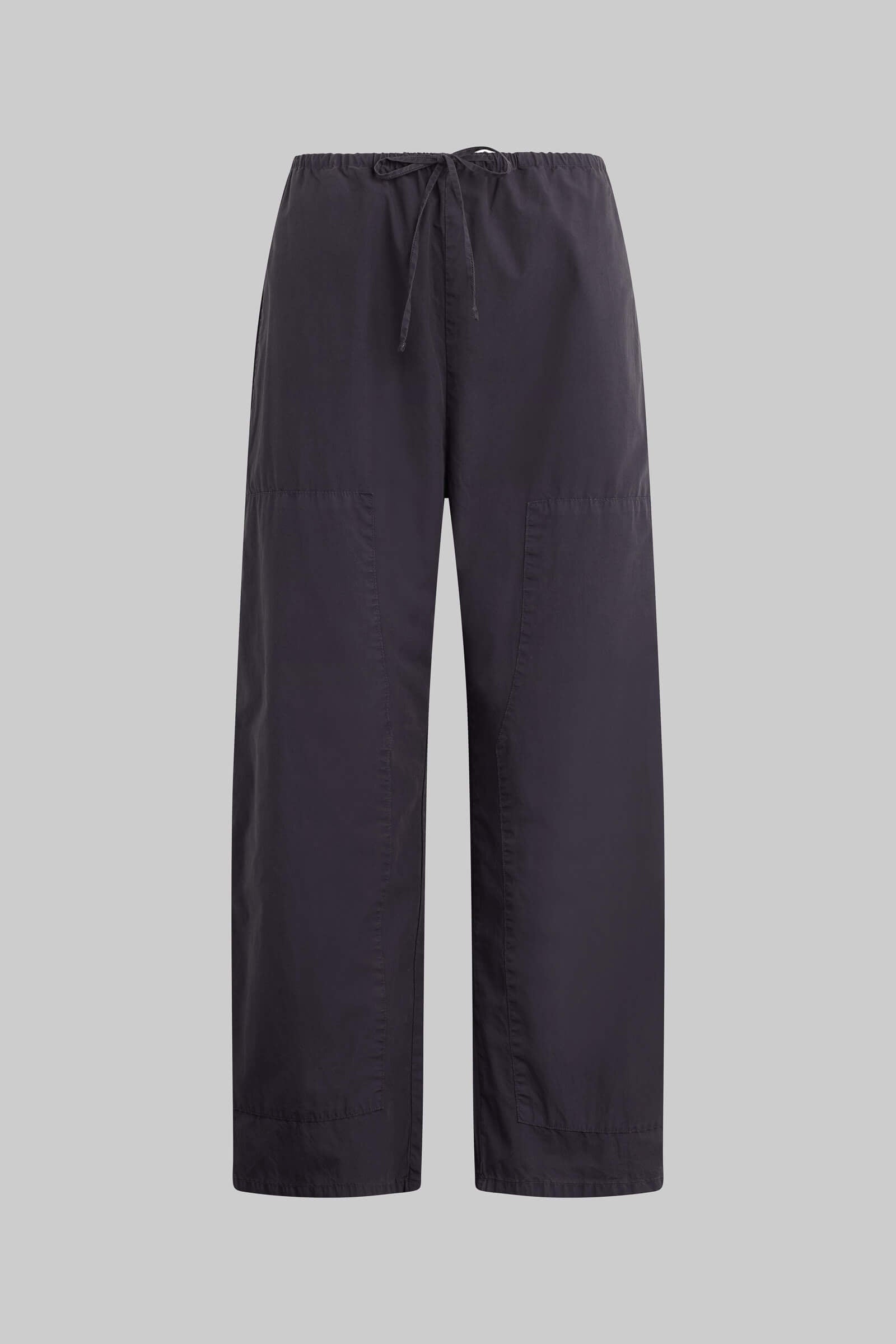 Cut in our garment dyed Kyoto Cotton, The Kyoto Carpenter Pant is a classic utility inspired trouser. This pull-on style pant features a baggy leg silhouette that hits at the ankle, with topstitched utility panels at front, an adjustable waistband, and patch pockets at back.