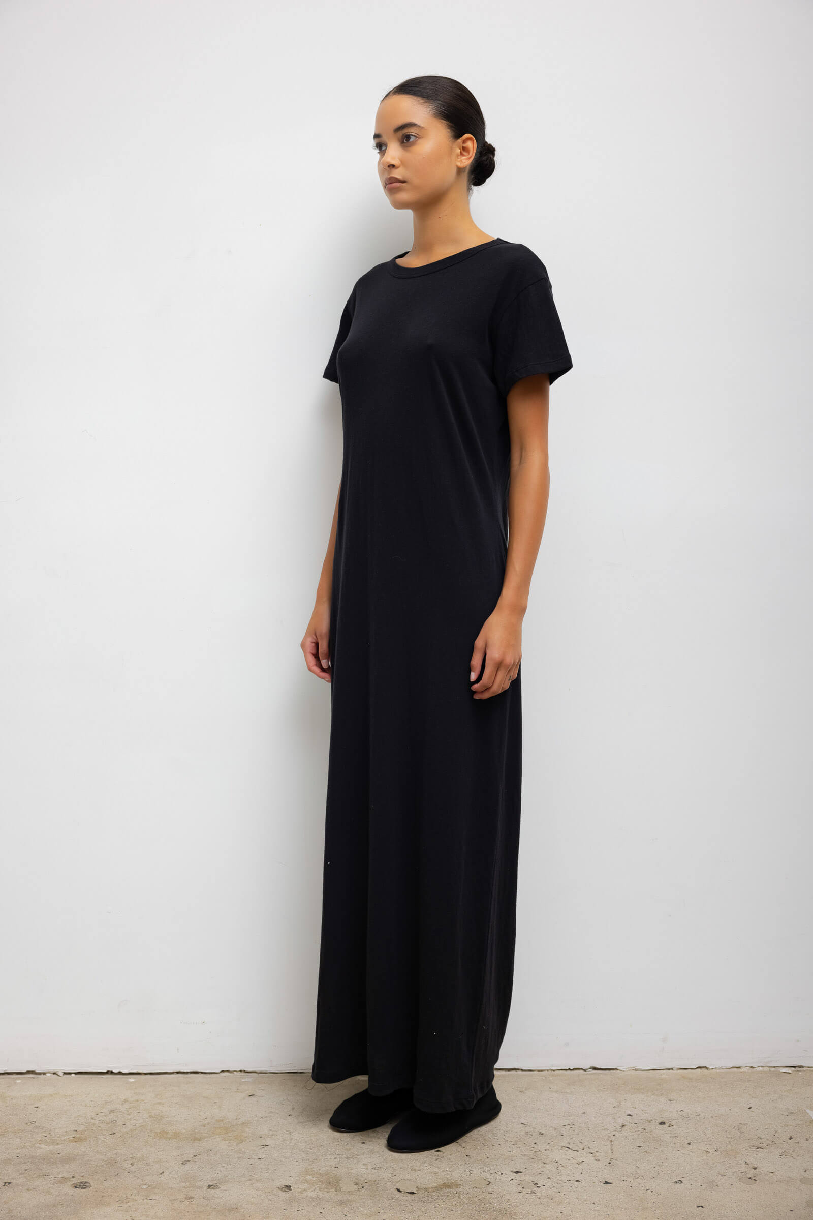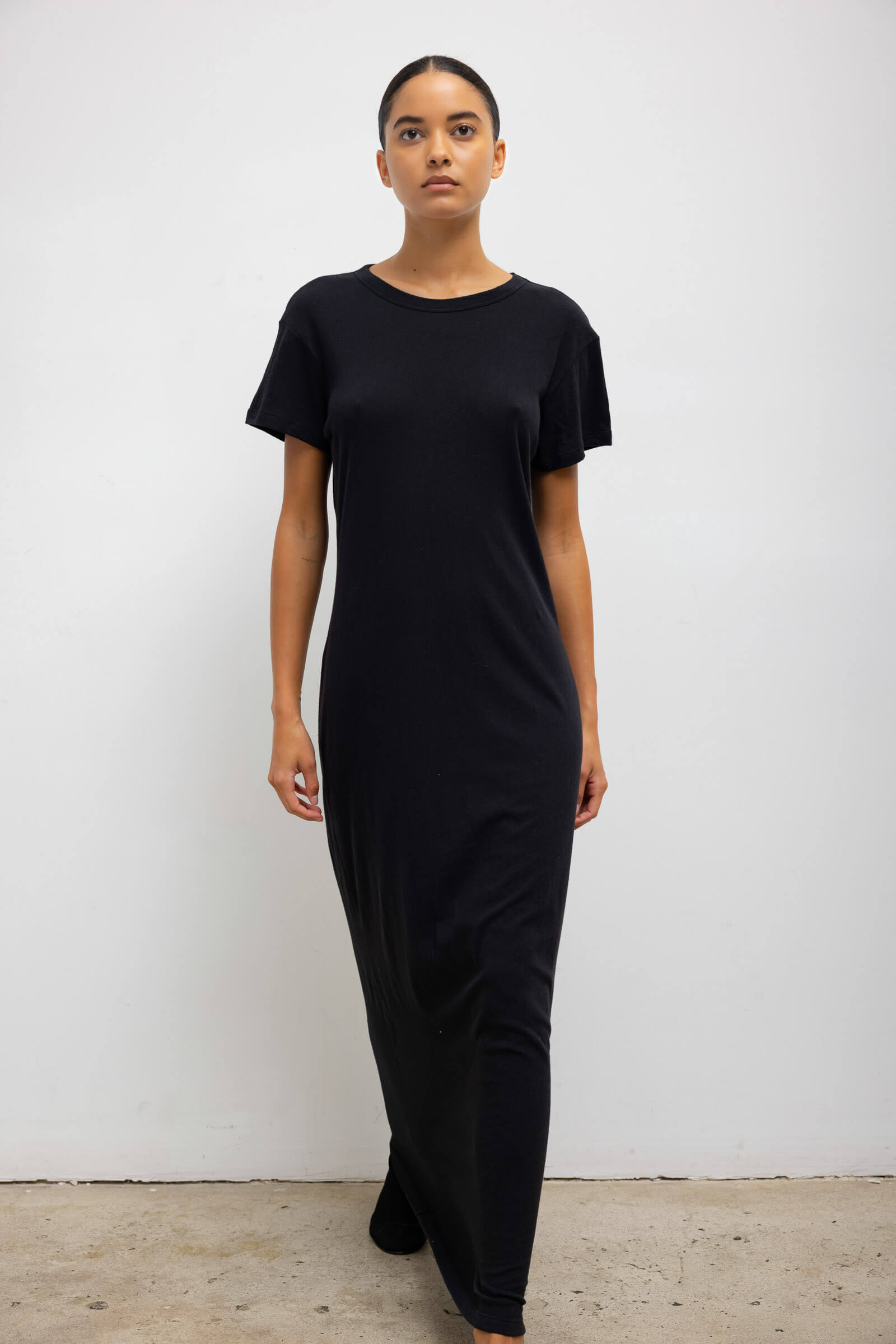 Cut in our feather light Laura Cotton, The Laura Maxi Dress is a foundational dressing staple for the warmer months. This maxi features a clean crew neckline, boxy short sleeves, and a sweeping maxi length.