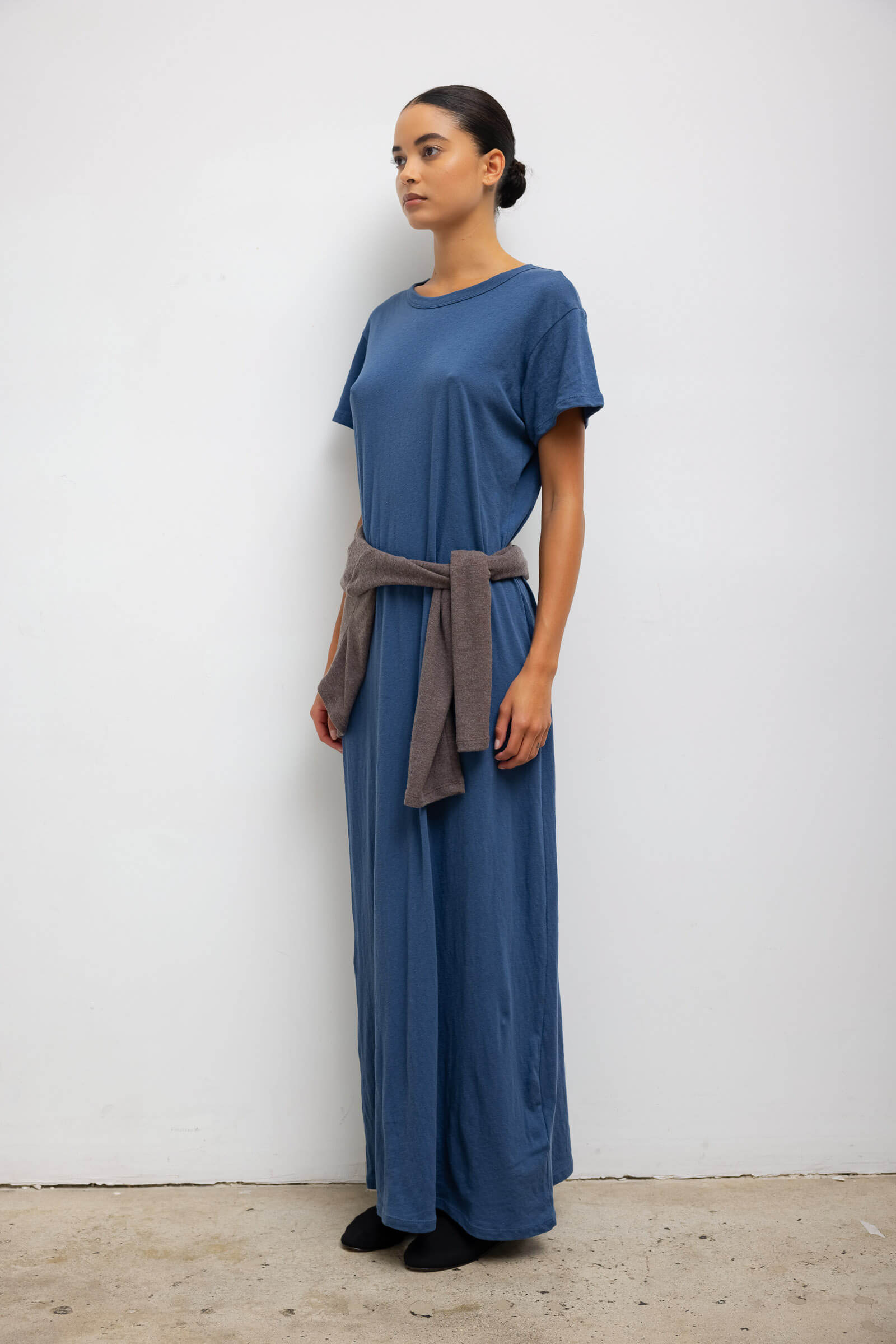 Cut in our feather light, recycled Laura Cotton, The Laura Maxi Dress is a foundational dressing staple for the warmer months— featuring a clean crew neckline, boxy short sleeves, and a sweeping maxi length.