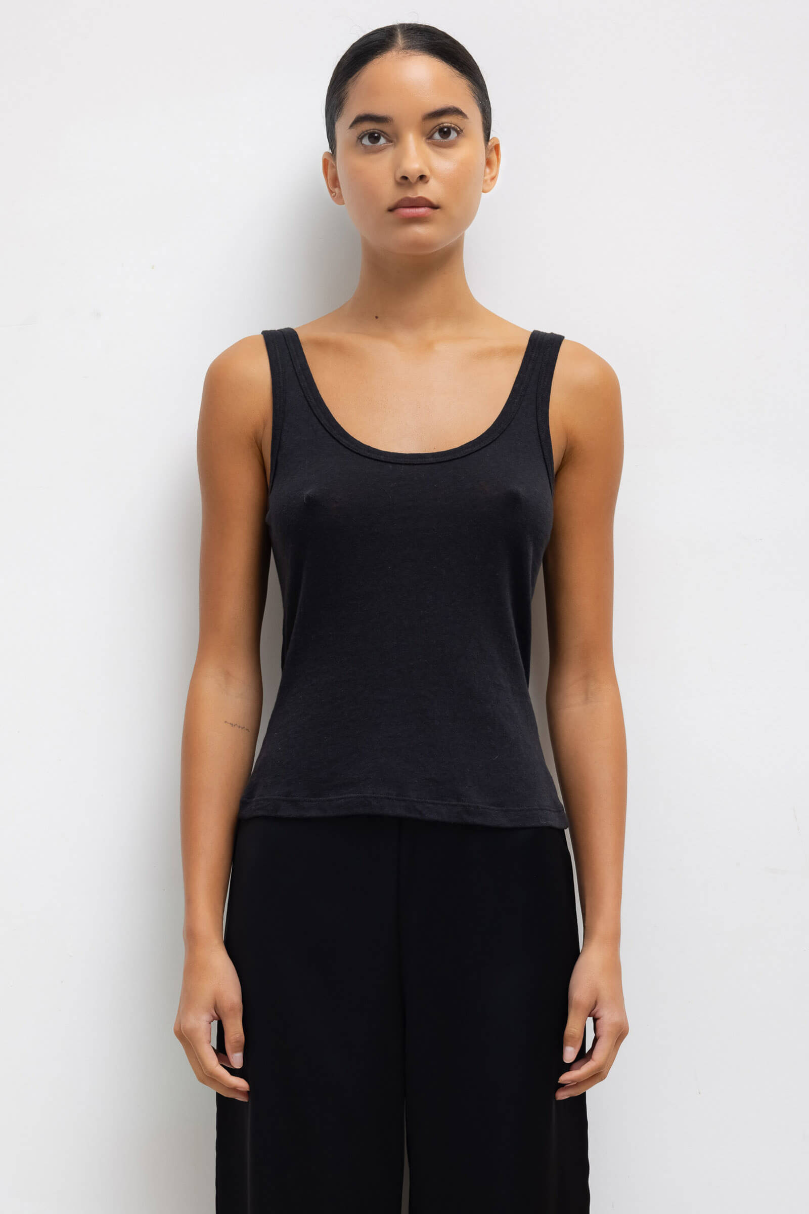 The perfect, everyday tank in our new Laura fabric - 100%, breathable recycled cotton. The Laura Scoop Neck Tank is a classic silhouette designed to live in and last a lifetime.