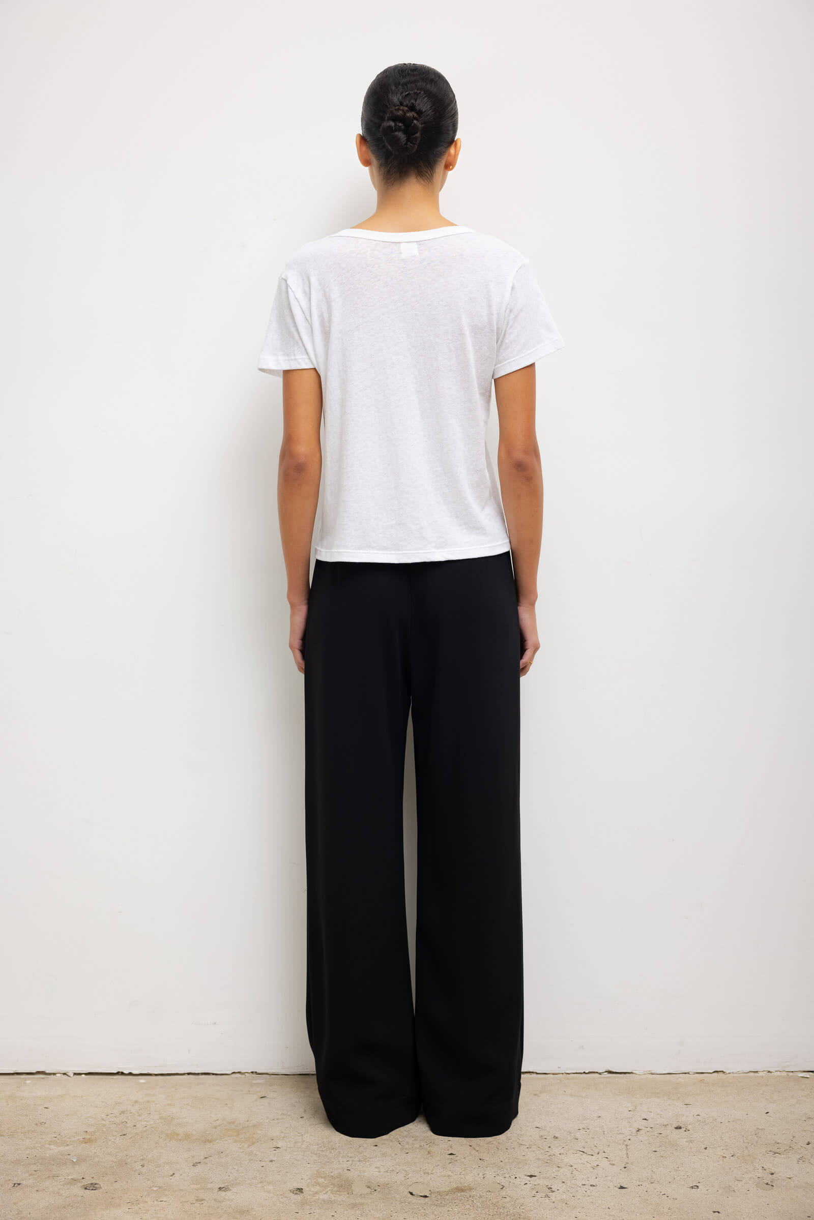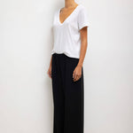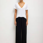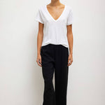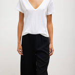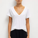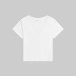 Cut in our feather light Laura Cotton, The Laura V Neck Tee features a wide V neckline, boxier silhouette, and short sleeves.