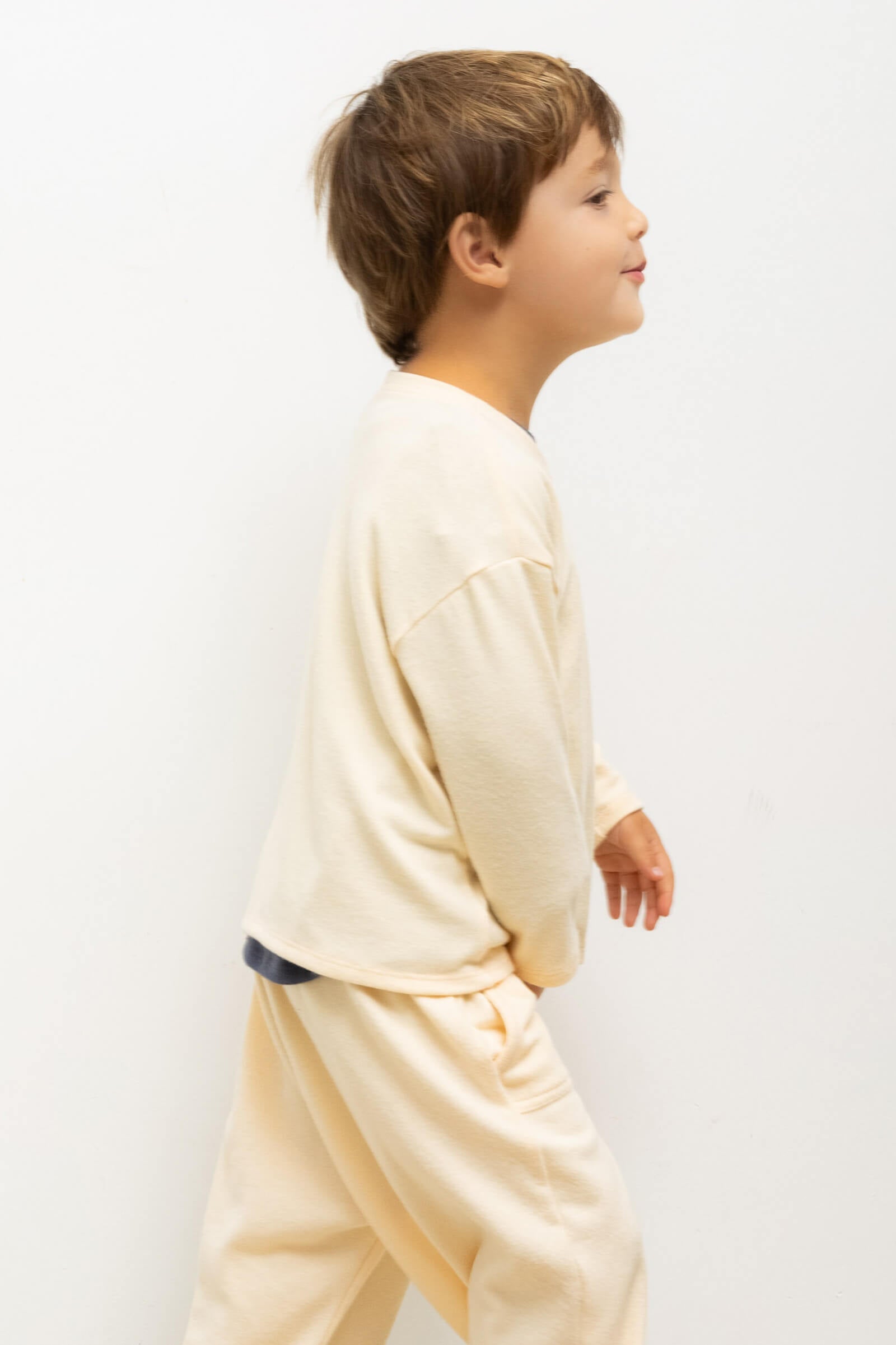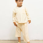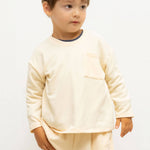 Cut in our buttery soft Lauren Sweater Jersey, The Lauren Bebe Long Sleeve Pocket Tee is a classic crewneck long sleeve with a tiny patch pocket at front. Match with mom in The Lauren Set in Vanilla.