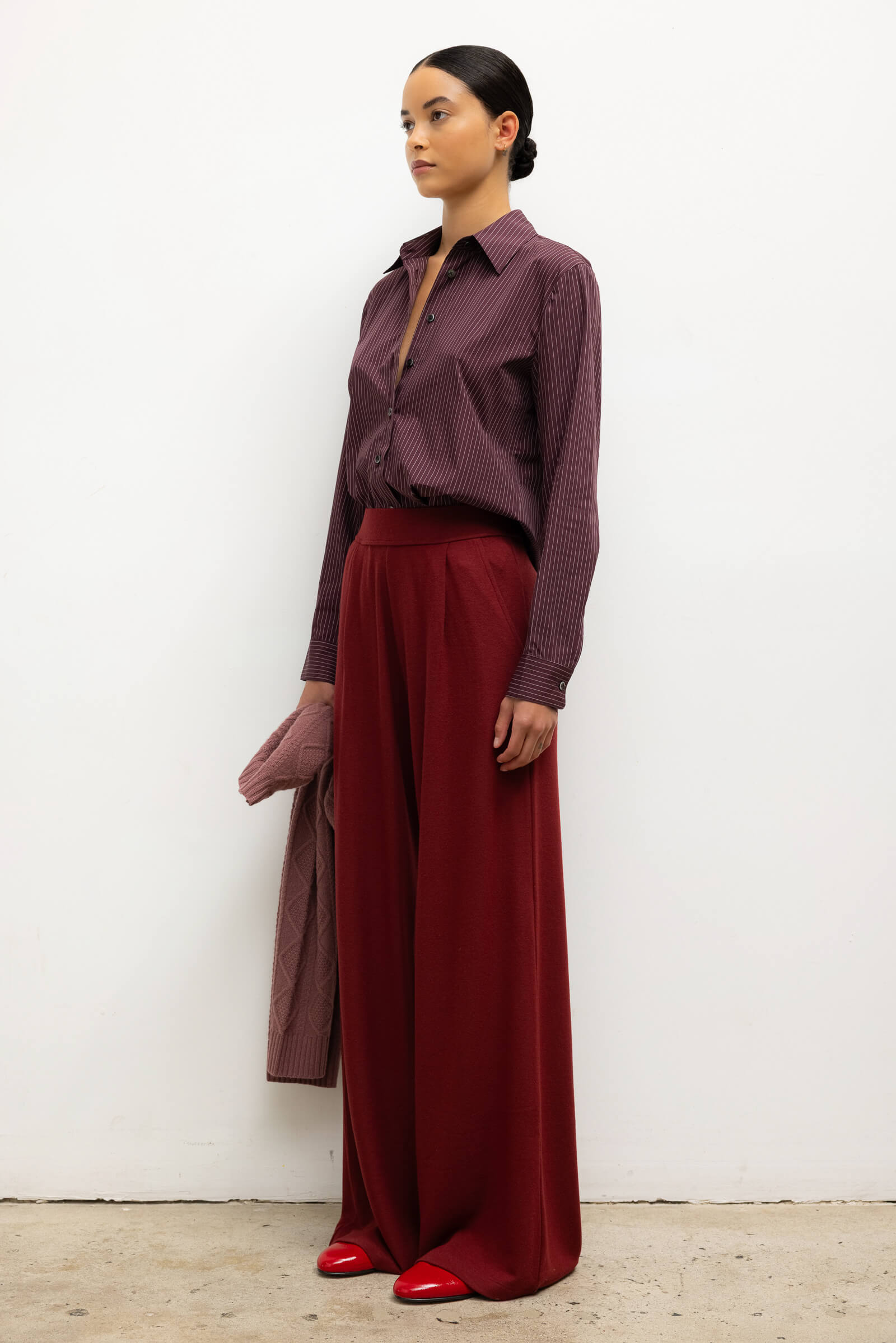Cut in our buttery soft Lauren Sweater Jersey, The Lauren Pleated Pocket Pant is a relaxed, wide leg silhouette featuring subtle front pleats and a wide, high rise waistband. Make it a matching set with any Lauren top.