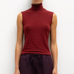 A foundation staple. Cut in our buttery soft Lauren brushed sweater jersey, The Lauren Sleeveless Turtleneck features a slightly fitted silhouette and a flexibly styled turtleneck. We're styling this underneath weightier knits, like The Zoe and Jesse - and as a matching set, of course, with the Lauren bottoms in Pinot.