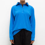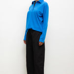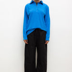 Crafted from our structure-holding Margo Cotton, The Margo Long Sleeve Polo is an oversized top featuring a pointed collar, henley placket, and relaxed long sleeves.