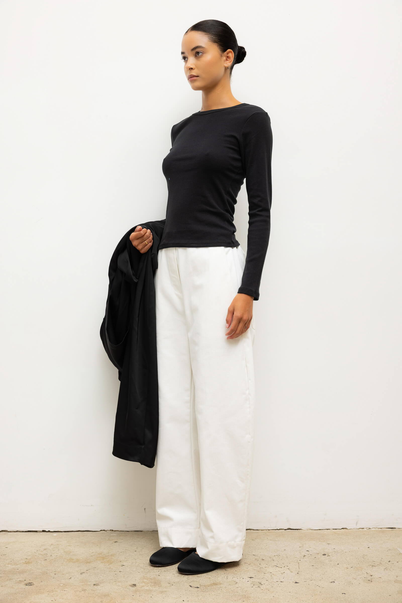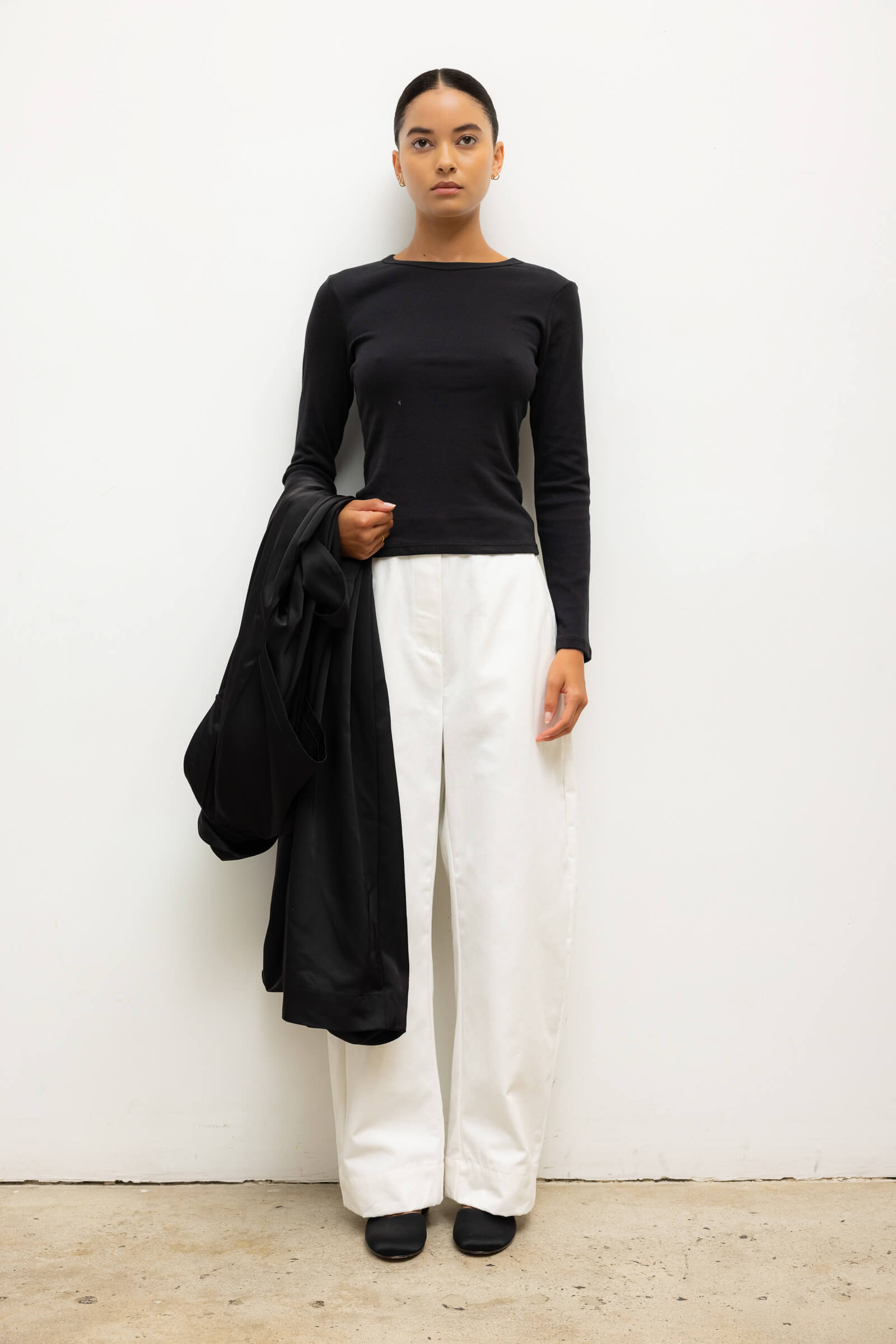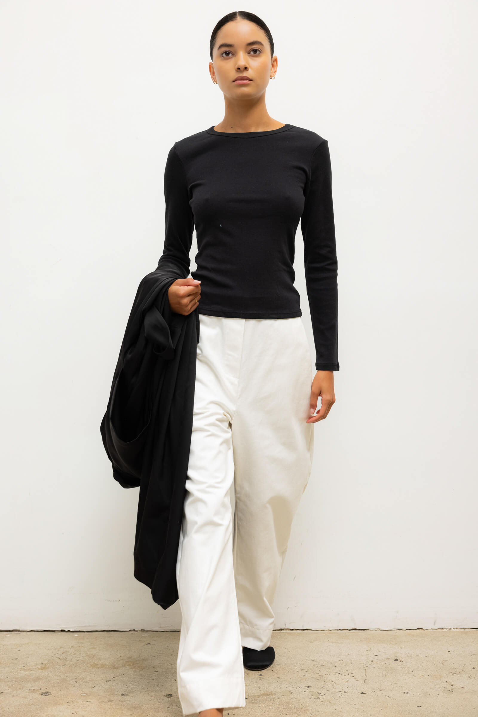 Cut in our body-hugging Nando Baby Rib Cotton, The Nando Slim Fit Long Sleeve features a classic crew neckline and fitted long sleeves.
