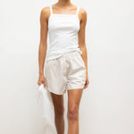 Cut in our body-hugging Nando Baby Rib Cotton, The Nando Square Neck Tank features a straight neckline, medium width spaghetti straps, and a fitted full length. Make it a matching set with the Nando Lounge Pant or mix it with any Yoshi Stripe bottom.
