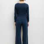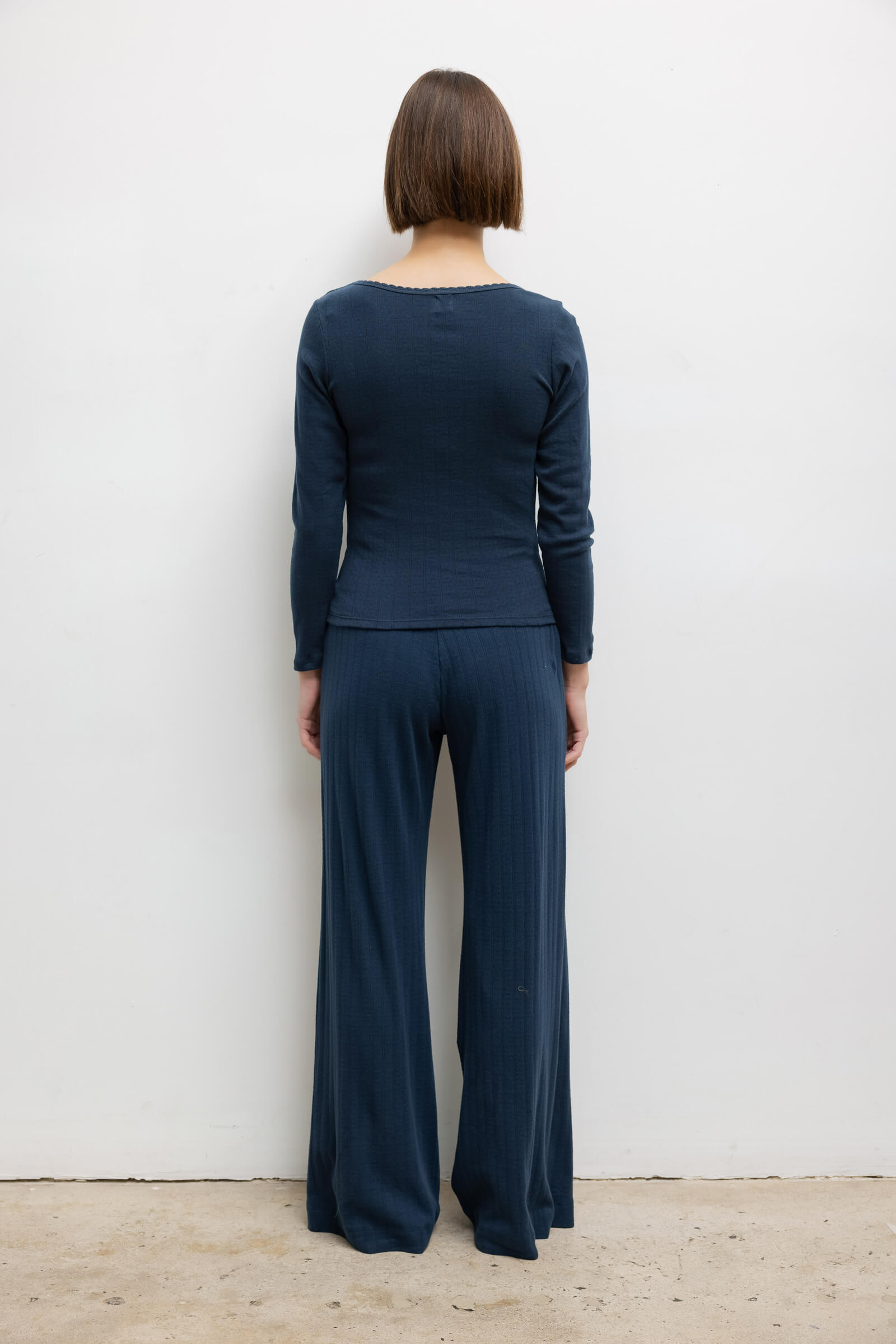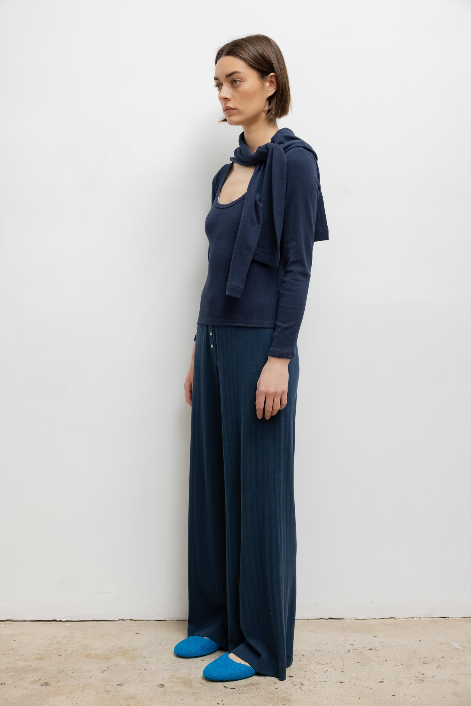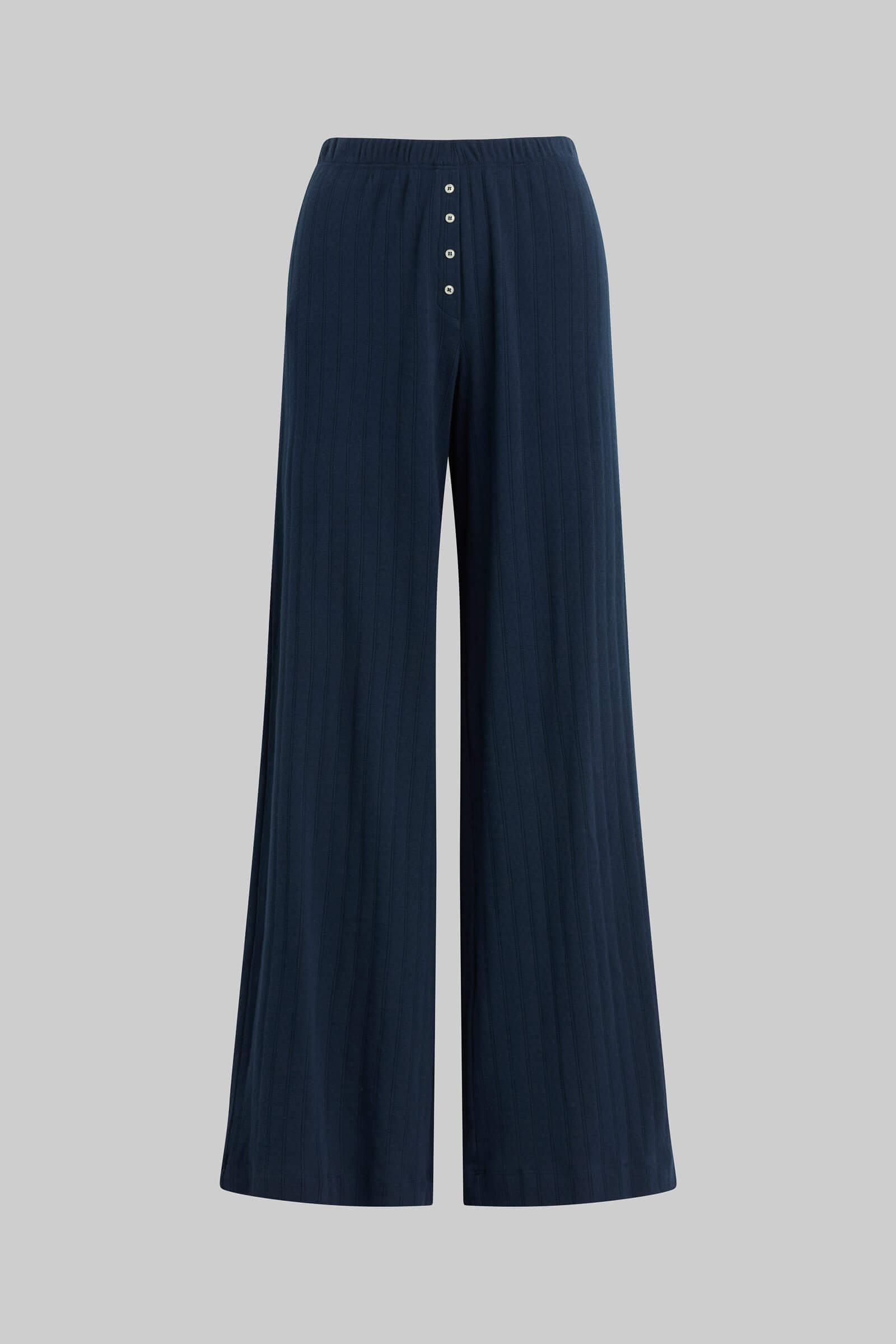 Cut in our nostalgic Pointelle Cotton, The Pointelle Boxer Pant is a wide leg silhouette featuring pinhole stripes, dainty eyelets, tonal henley buttons and a comfortable elasticized waistband that sits at the natural waist.