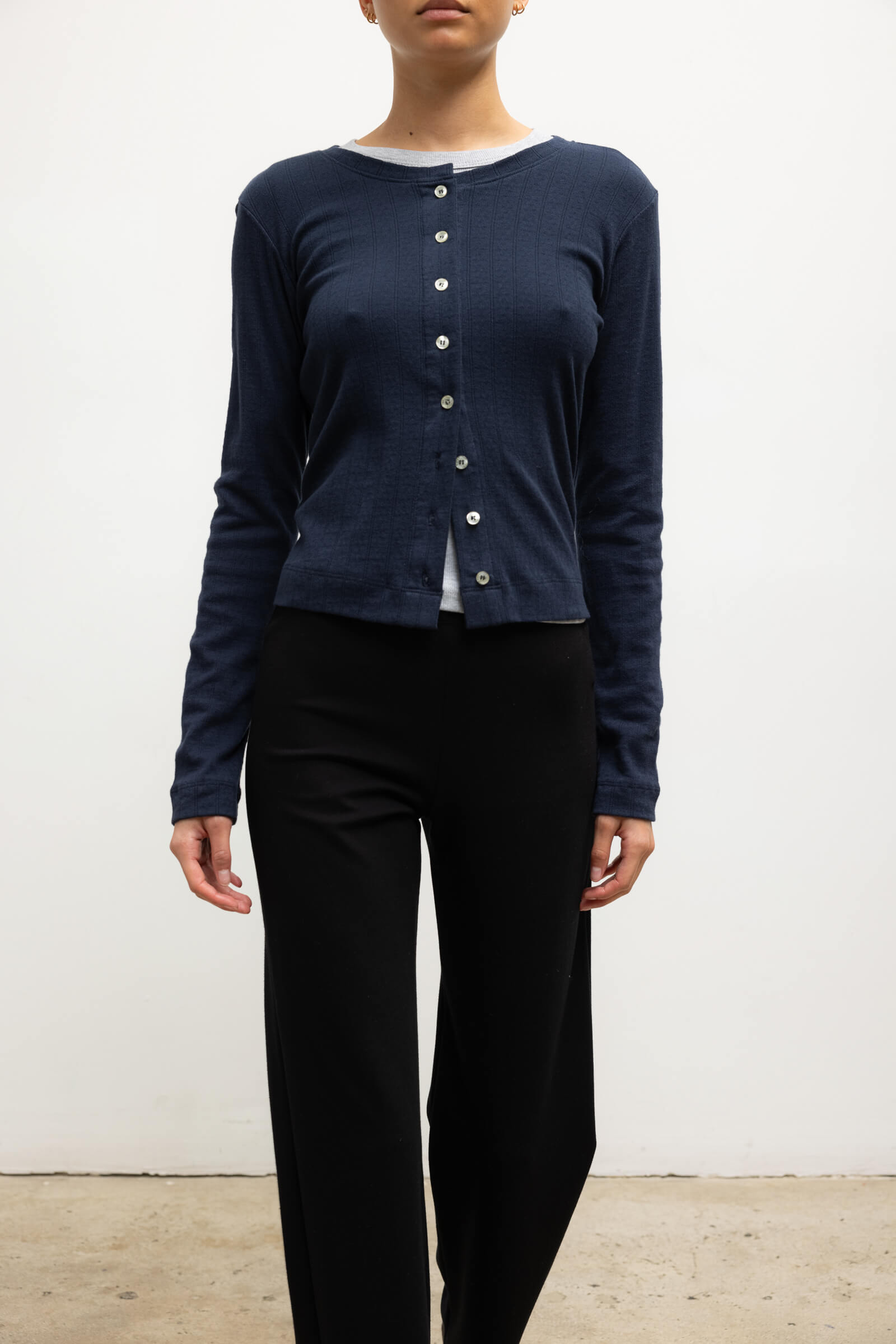 Leset - Pointelle Classic Crew Cardigan