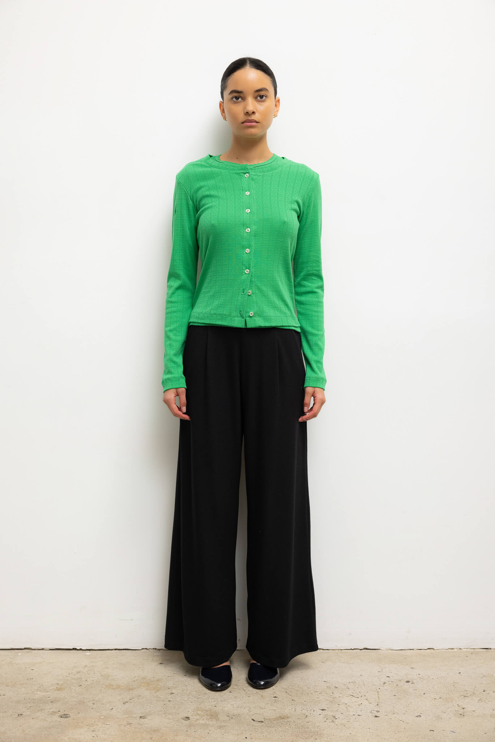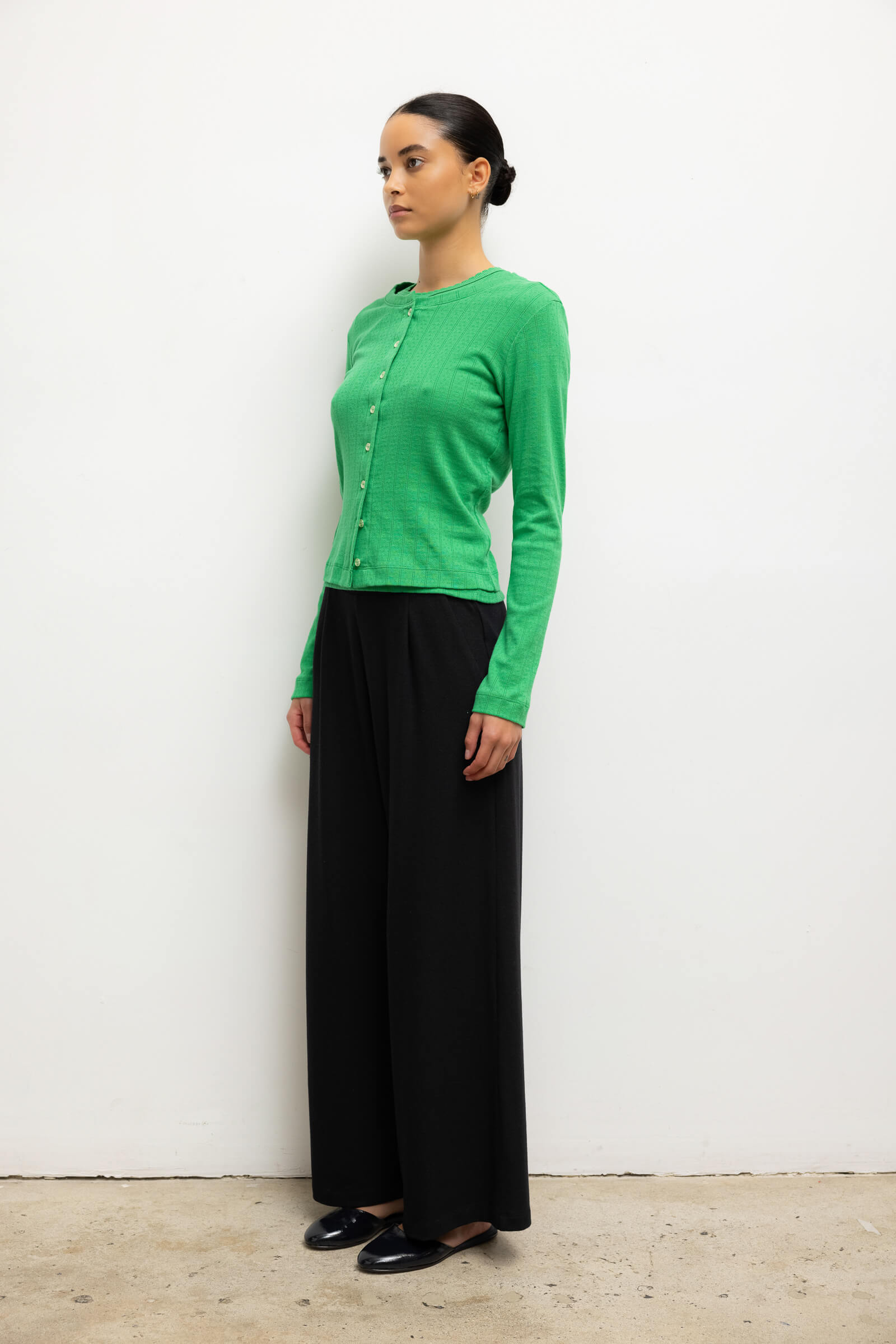 Cut in our nostalgic Pointelle Cotton, The Pointelle Classic Crew Cardigan is the perfect little sweater. Featuring our signature pinhole stripes, dainty eyelets, and button front closure. Wear it button up by itself or opened with any of our bestselling Pointelle tops.