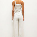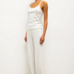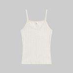 Cut in our nostalgic Pointelle Cotton, The Pointelle Tank is a classic spaghetti strap silhouette, featuring our signature pinhole stripes, dainty eyelets and scalloped edging. Wear this by itself, or layered underneath button downs and sweaters.