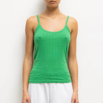 Cut in our nostalgic Pointelle Cotton, The Pointelle Tank is a classic spaghetti strap silhouette, featuring our signature pinhole stripes, dainty eyelets and scalloped edging. Wear this by itself, or layered underneath the matching Pointelle Classic Crew Cardigan.