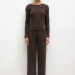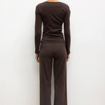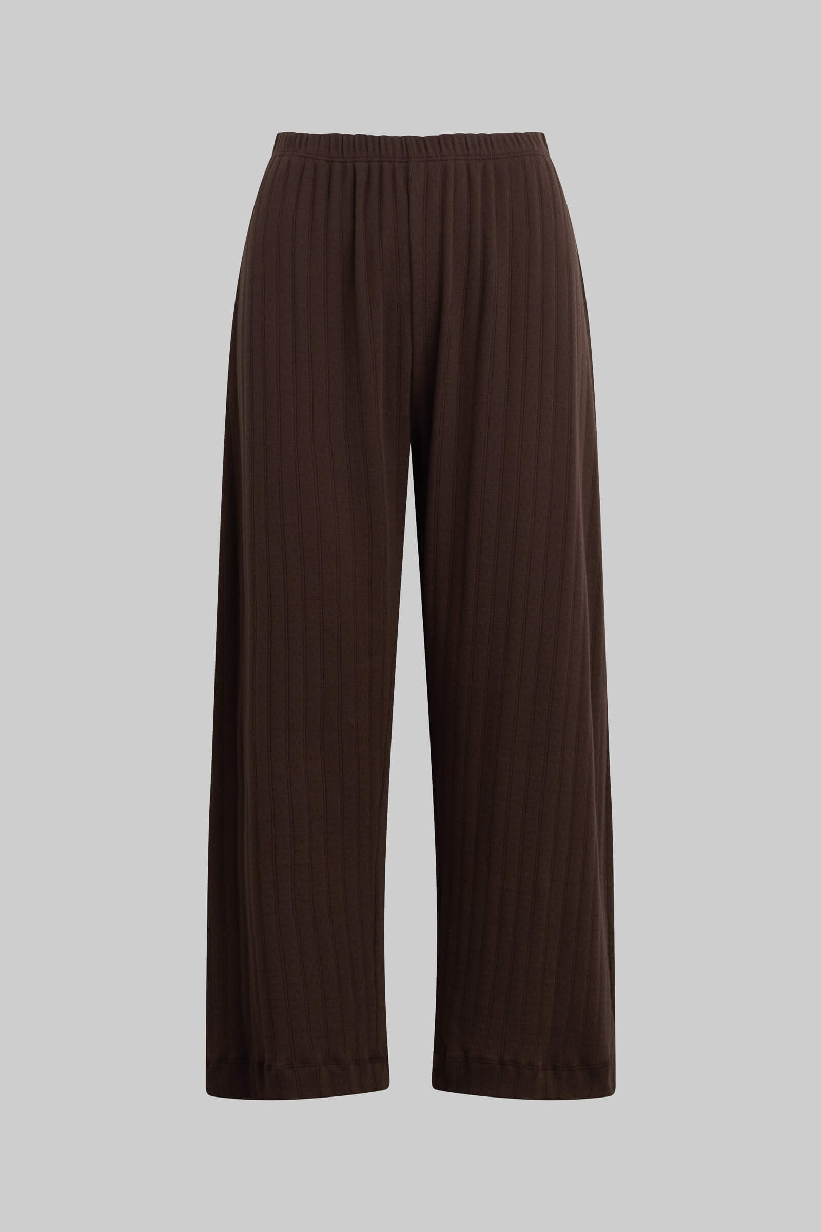 Cut in our nostalgic Pointelle Cotton, The Pointelle Crop Wide Leg is a pull-on style pant, featuring a wide elastic waistband and a relaxed leg with a cropped length. Complete the set with any matching Pointelle top in Chocolate.