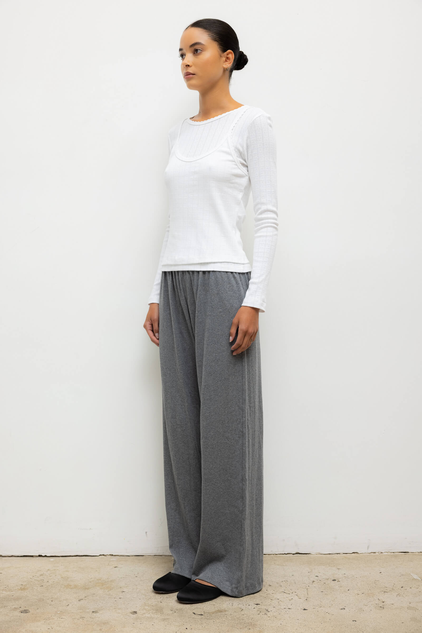 Cut in our nostalgic Pointelle Cotton, The Pointelle Layered Long Sleeve Top combines two of our bestselling Pointelle styles into one - a classic spaghetti strap tank over a high neck slim fit long sleeve. Mix it with The Yoshi Set in Mocha Brown - or complete the set with any Pointelle bottom.