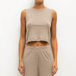 Cut in our nostalgic Pointelle Cotton, The Pointelle Sleeveless is a classic bateau silhouette, featuring our signature pinhole stripes, dainty eyelets, and scalloped edging.