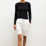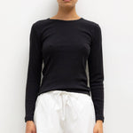 Cut in our nostalgic Pointelle Cotton, The Pointelle Slim Fit Long Sleeve features a classic crew neckline with our signature pinhole stripes, dainty eyelets, and scalloped edging. Full length with fitted long sleeves.
