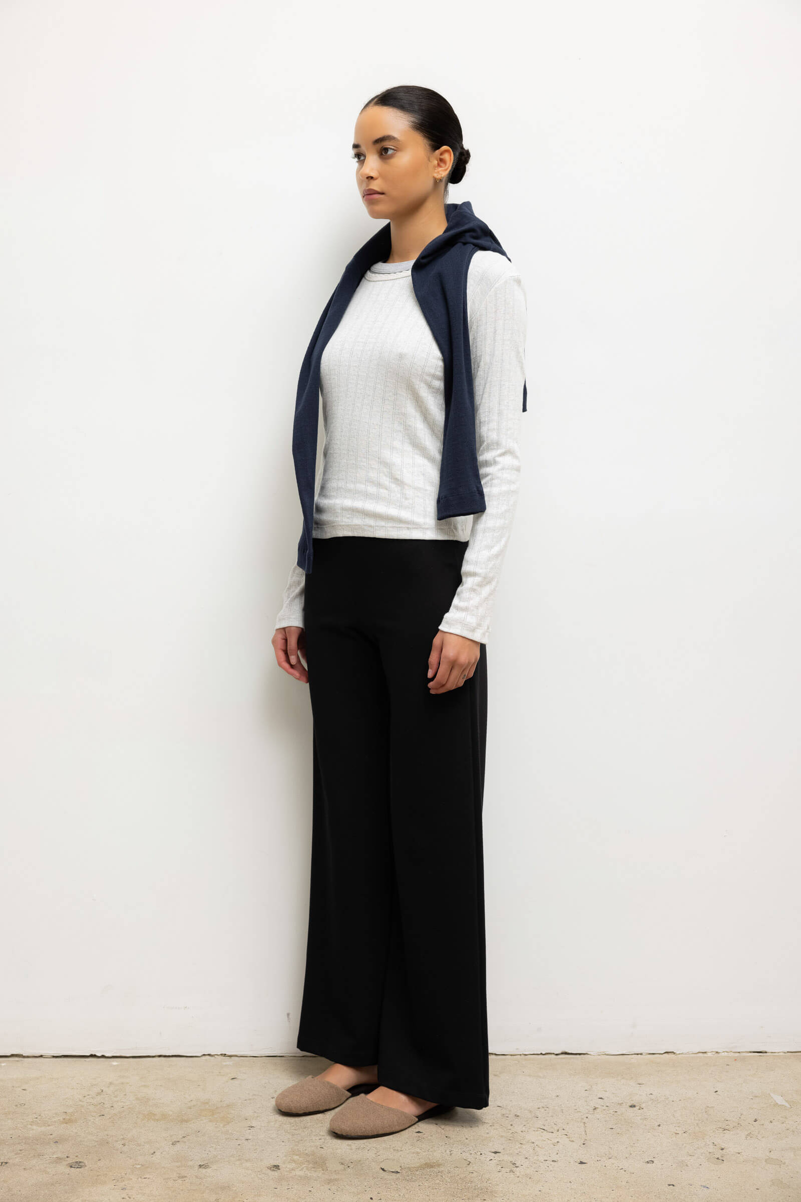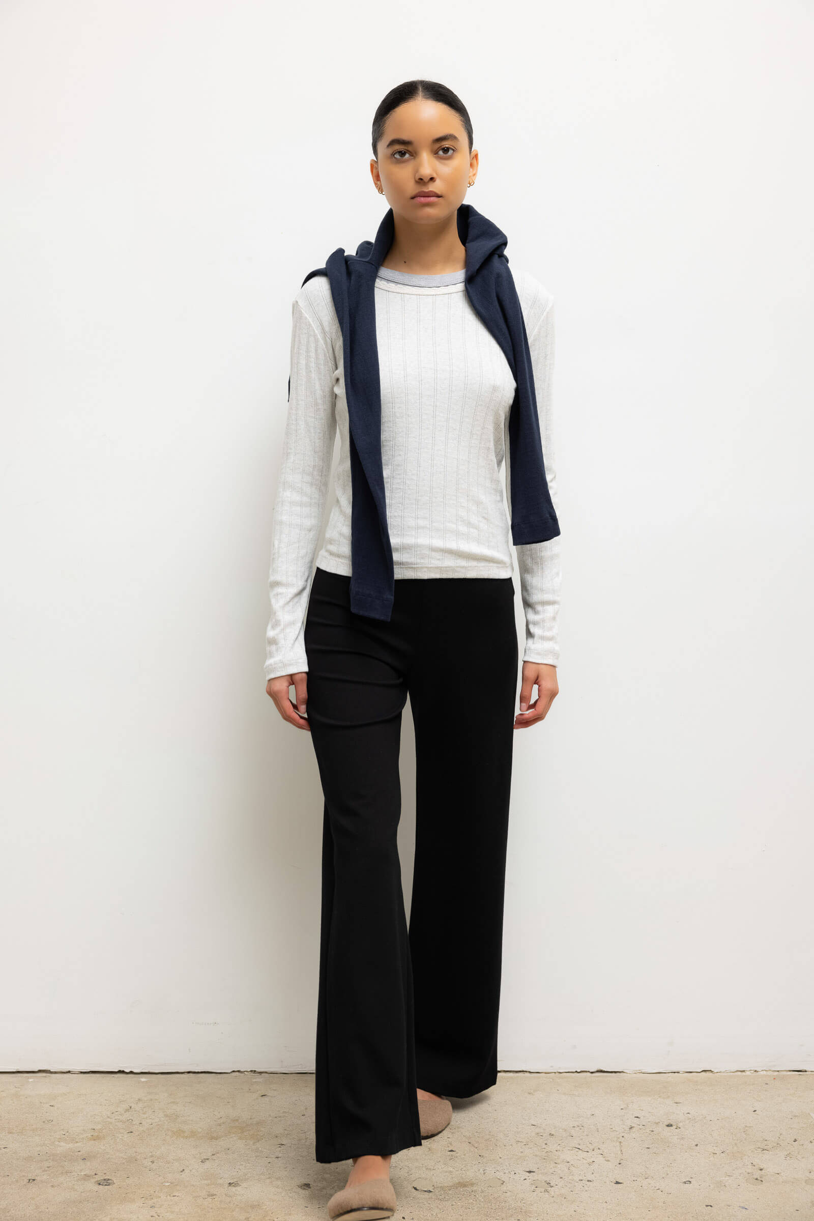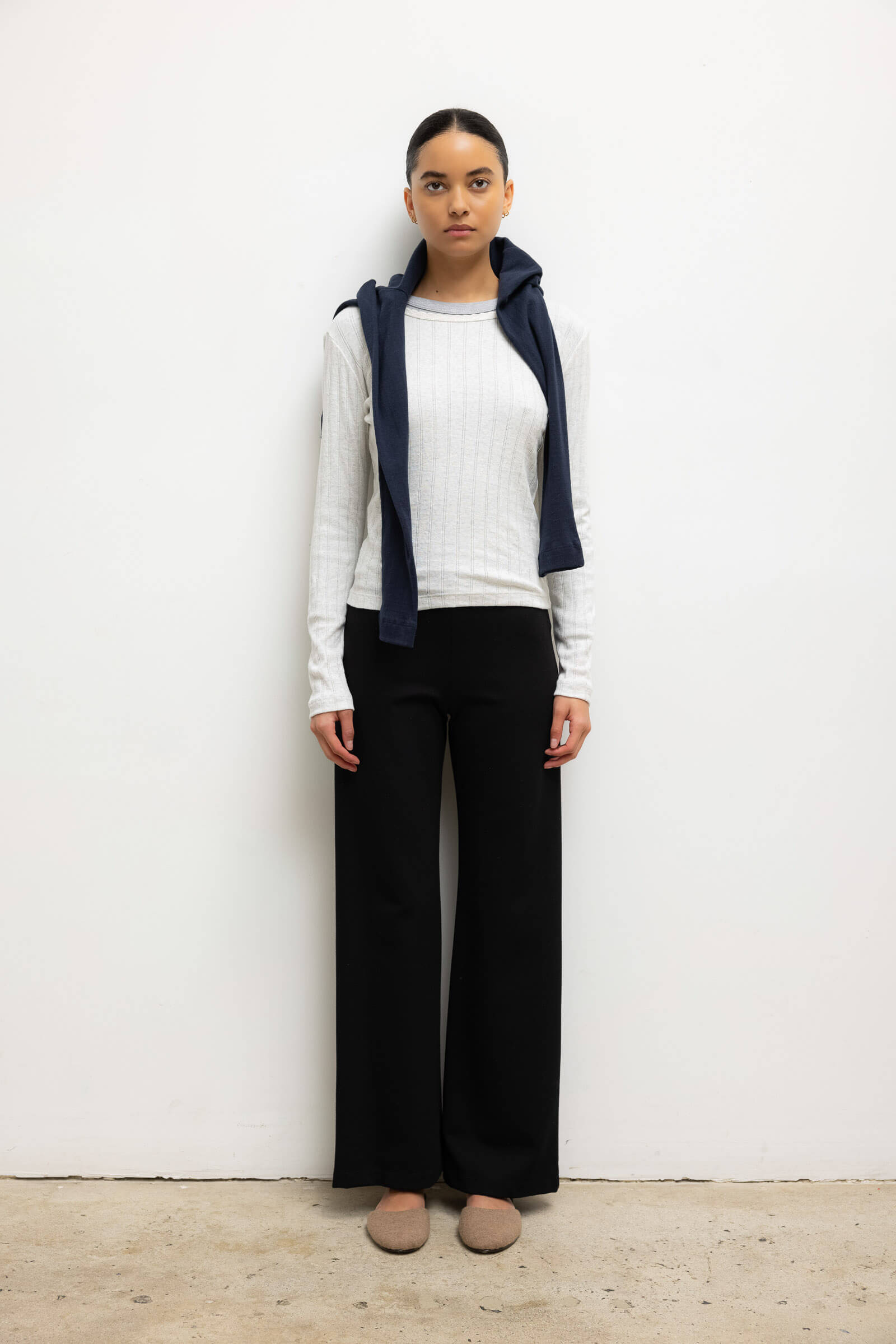 Cut in our nostalgic Pointelle Cotton, The Pointelle Slim Fit Long Sleeve features a classic crew neckline with our signature pinhole stripes, dainty eyelets, and scalloped edging. Full length with fitted long sleeves.