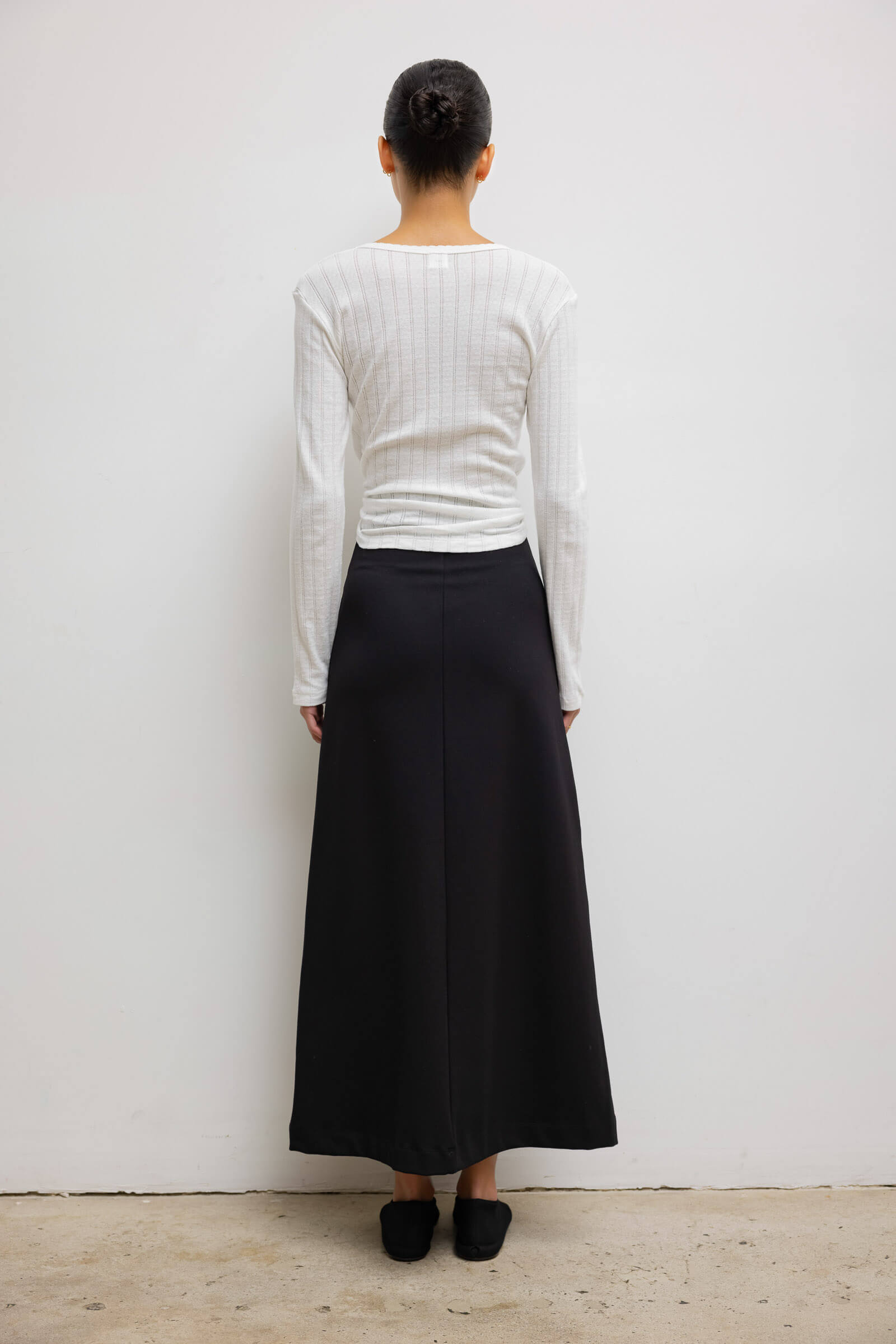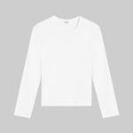 Cut in our nostalgic Pointelle Cotton, The Pointelle Slim Fit Long Sleeve features a classic crew neckline with our signature pinhole stripes, dainty eyelets, and scalloped edging. Full length with fitted long sleeves.