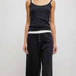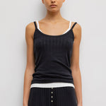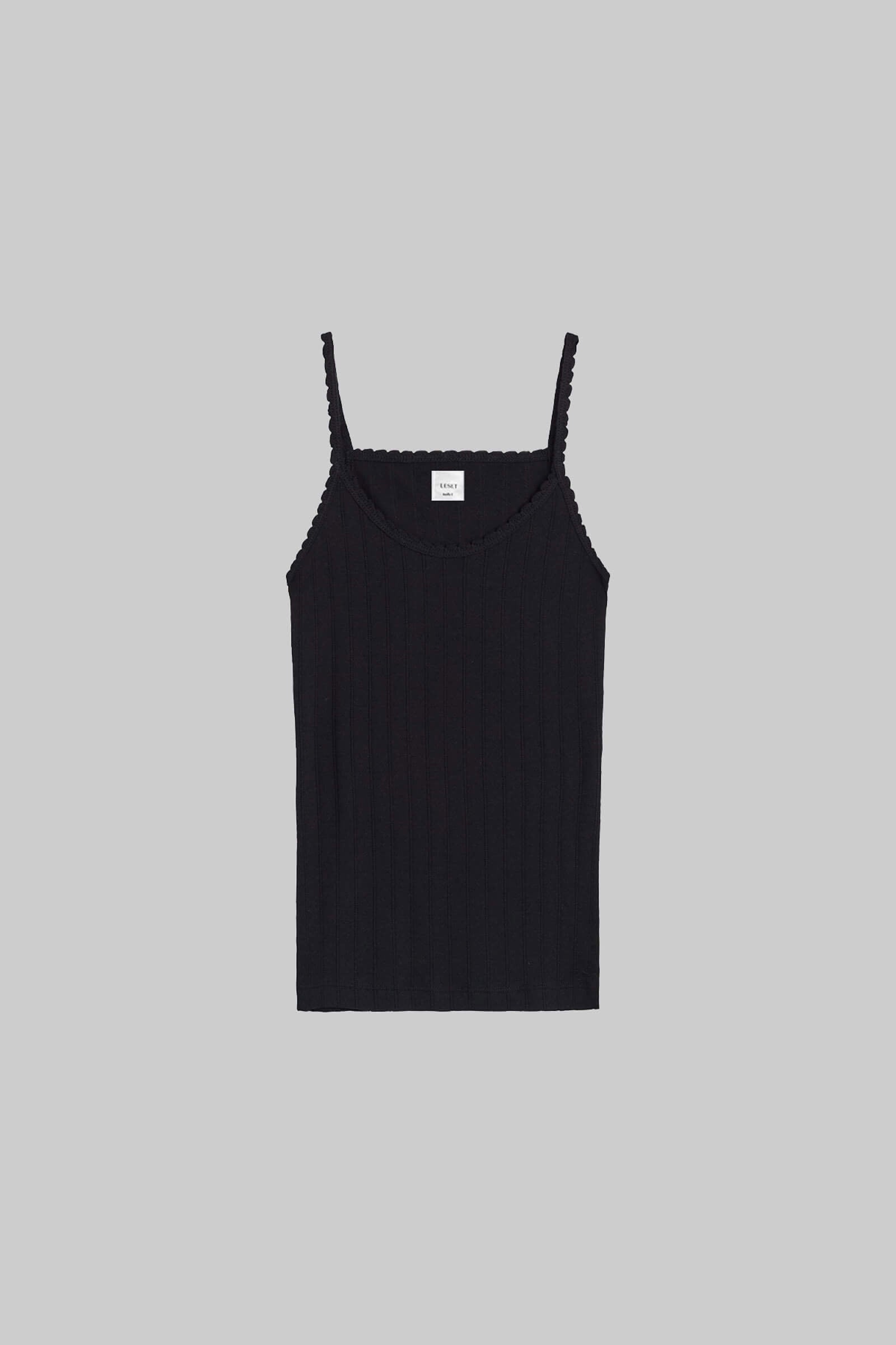 Cut in our nostalgic Pointelle Cotton, The Pointelle Tank is a classic spaghetti strap silhouette, featuring our signature pinhole stripes, dainty eyelets and scalloped edging. Wear this by itself, or layered underneath button downs and sweaters.