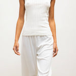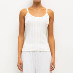 Cut in our nostalgic Pointelle Cotton, The Pointelle Tank is a classic spaghetti strap silhouette, featuring our signature pinhole stripes, dainty eyelets and scalloped edging. Wear this by itself, or layered underneath button downs and sweaters.