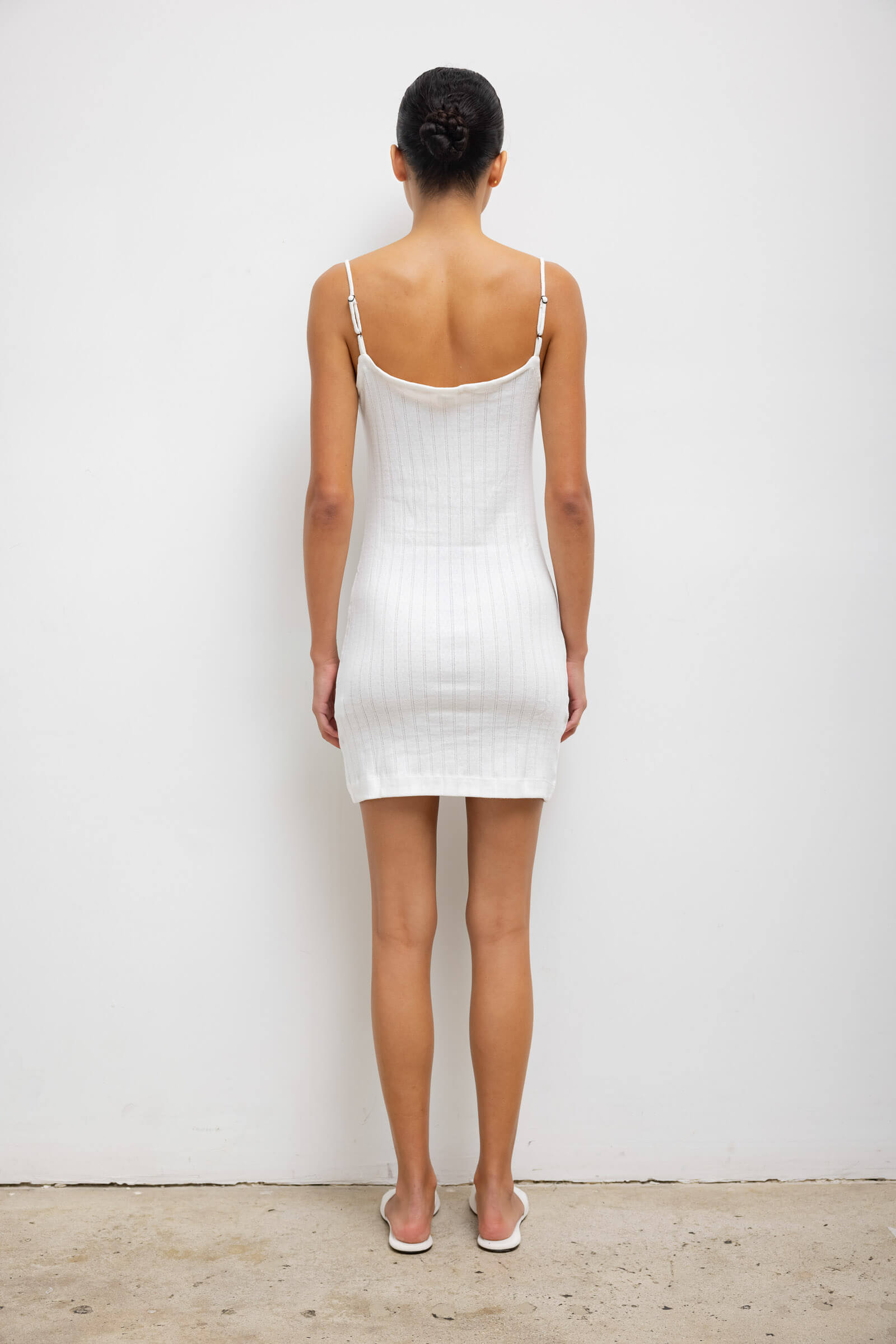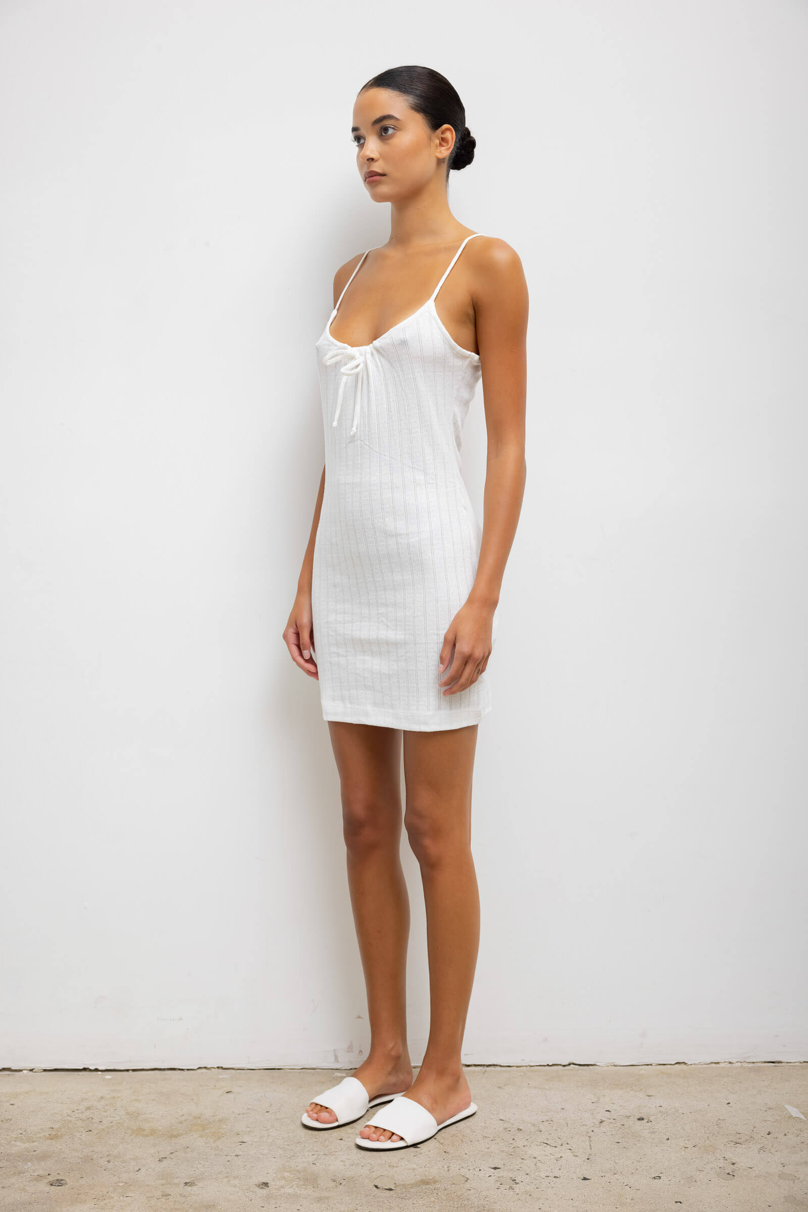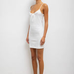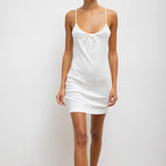 The perfect little dress - cut in our bestselling 100% cotton Pointelle for a nostalgic twist. The Pointelle Tie Front Dress features a gently cinched scoop neckline, adjustable spaghetti straps, and a mini length.