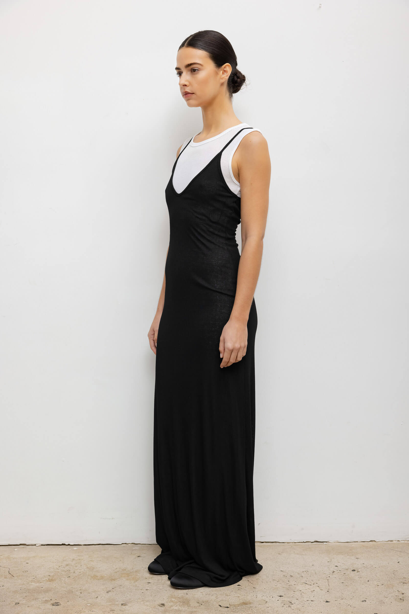 Cut in our new Rozzi Viscose Rib, The Rozzi V Neck Muscle Maxi Dress is a double layered maxi that transitions seamlessly from day to night. Pair with slides and sunnies during the day - then dress it up with architectural accessories and heels at night.