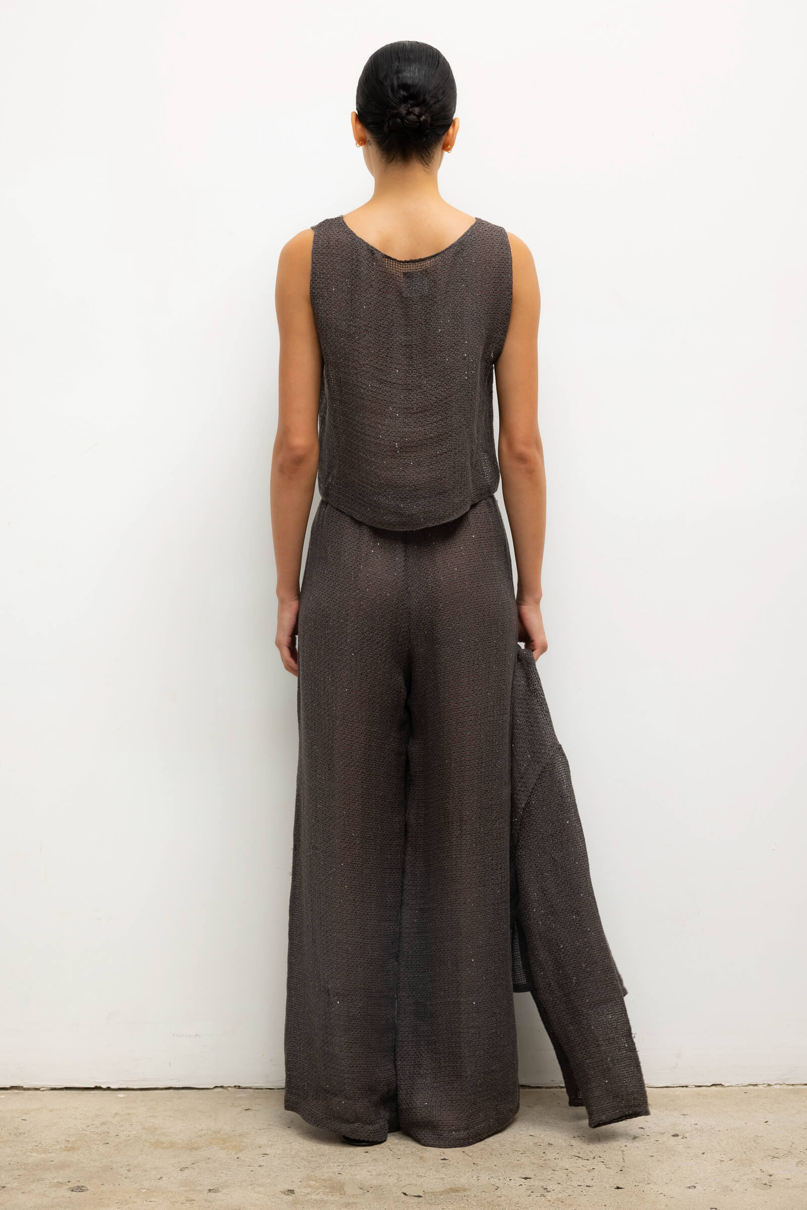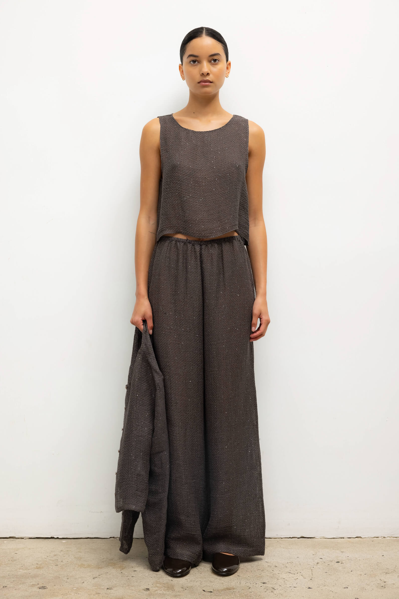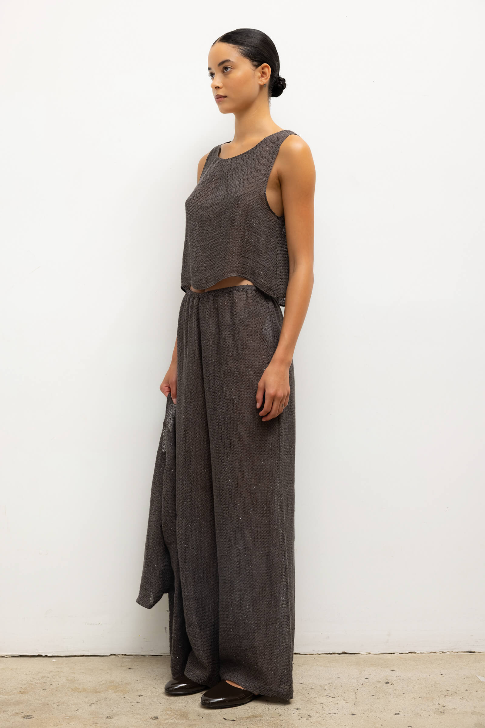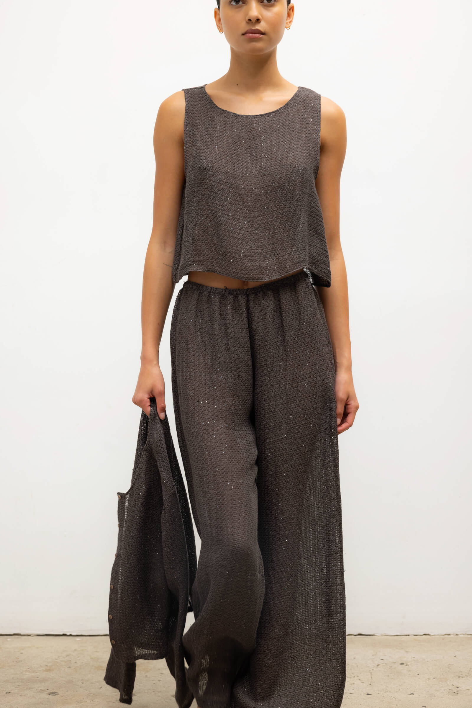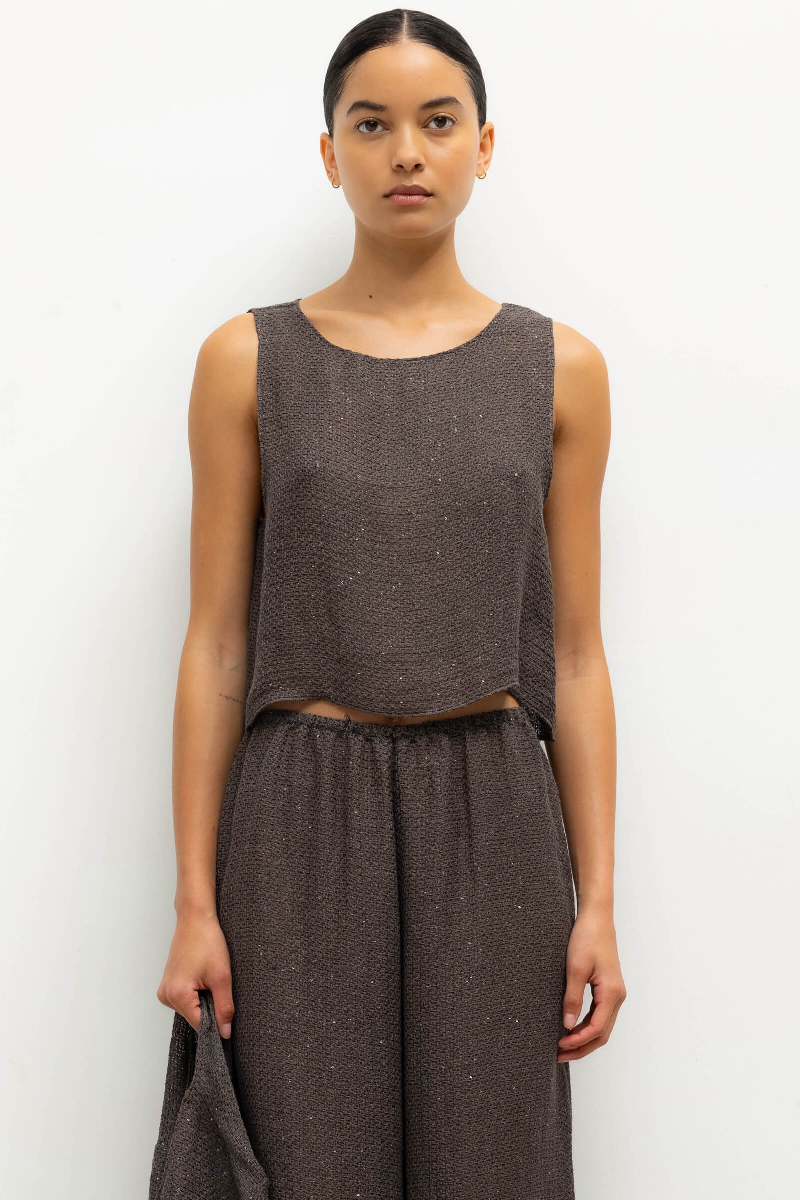 Cut in our subtly sequined Stella Linen, the Stella Crop Sleeveless Crew is a classic shell silhouette cropped at just the right length. Make it a twin set with The Stella Crew Cardigan and full Stella look with the matching Stella Wide Leg Pant.