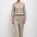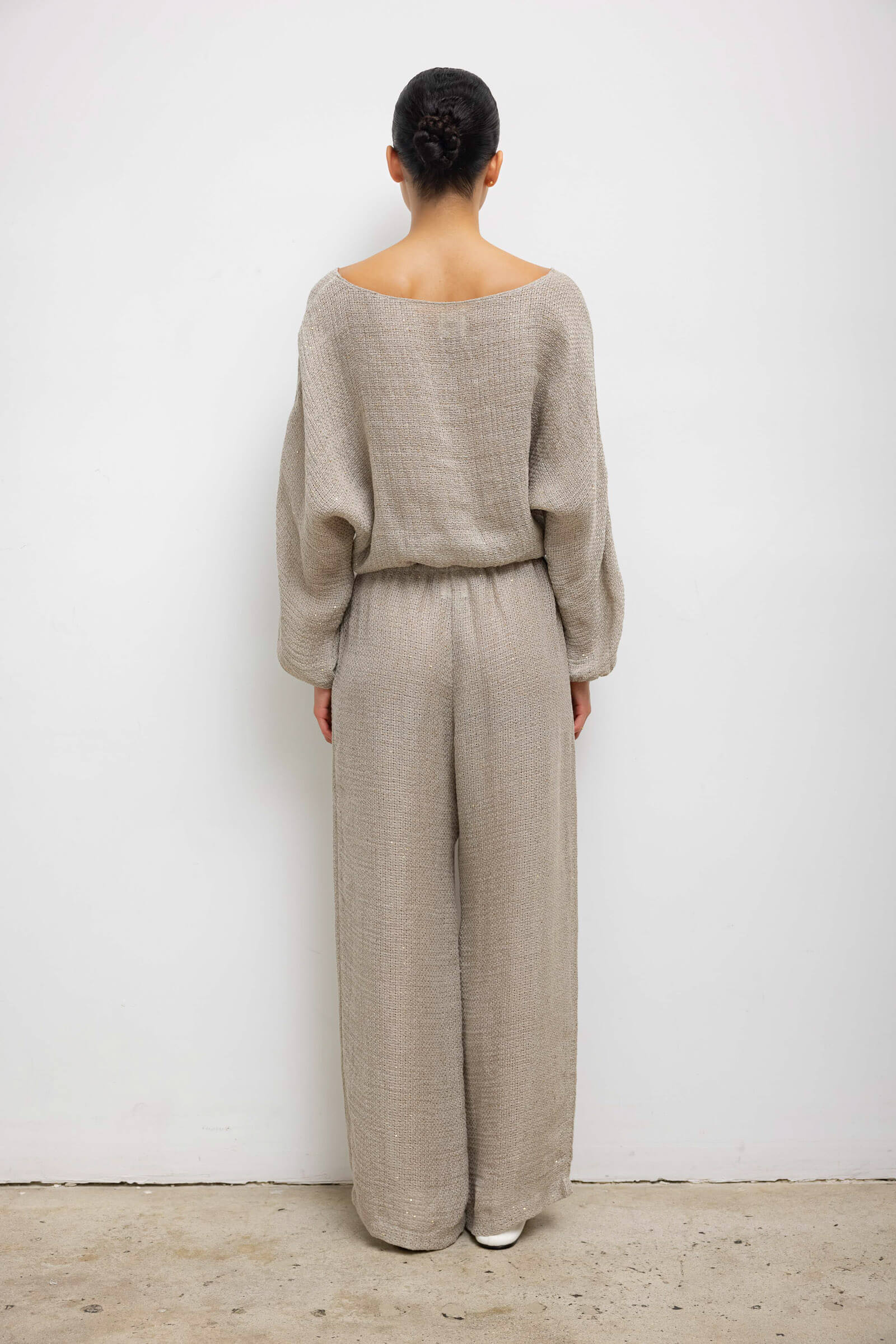 Cut in our subtly sequined Stella Linen, the Stella Long Sleeve Blouson features a soft boat neckline, cropped length, elasticated cuffs and hemline. Make it a matching set with The Stella Wide Leg Pant.