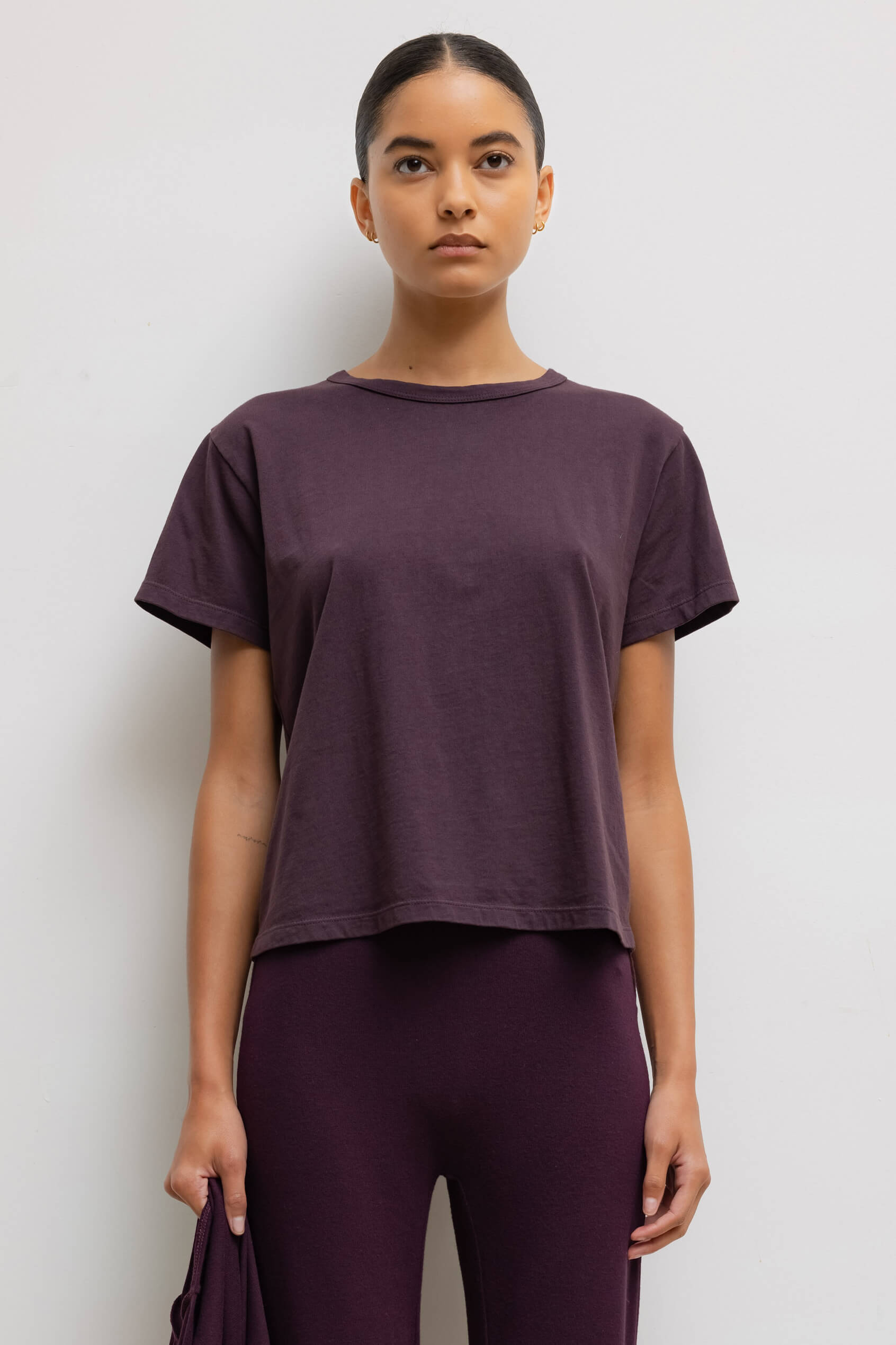 Our no. 1 bestselling classic tee - now in special edition Dark Berry. A timeless, crewneck short sleeve t-shirt that strikes the perfect balance between a tailored and relaxed silhouette. The Margo is the ultimate year-round, everyday basic.