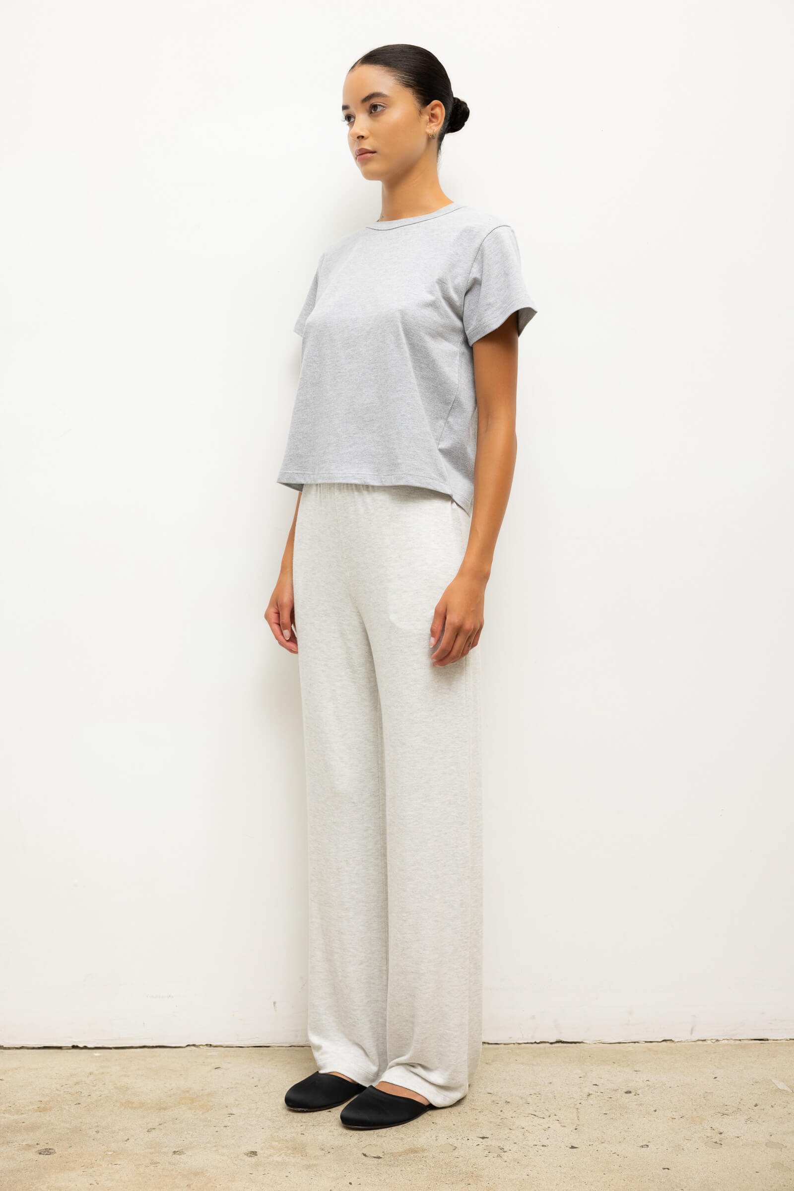 Our no. 1 bestselling classic tee, now in soft, medium toned Heather Grey. A timeless, crewneck short sleeve t-shirt that strikes the perfect balance between a tailored and relaxed silhouette. The Margo is the ultimate year-round, everyday basic.