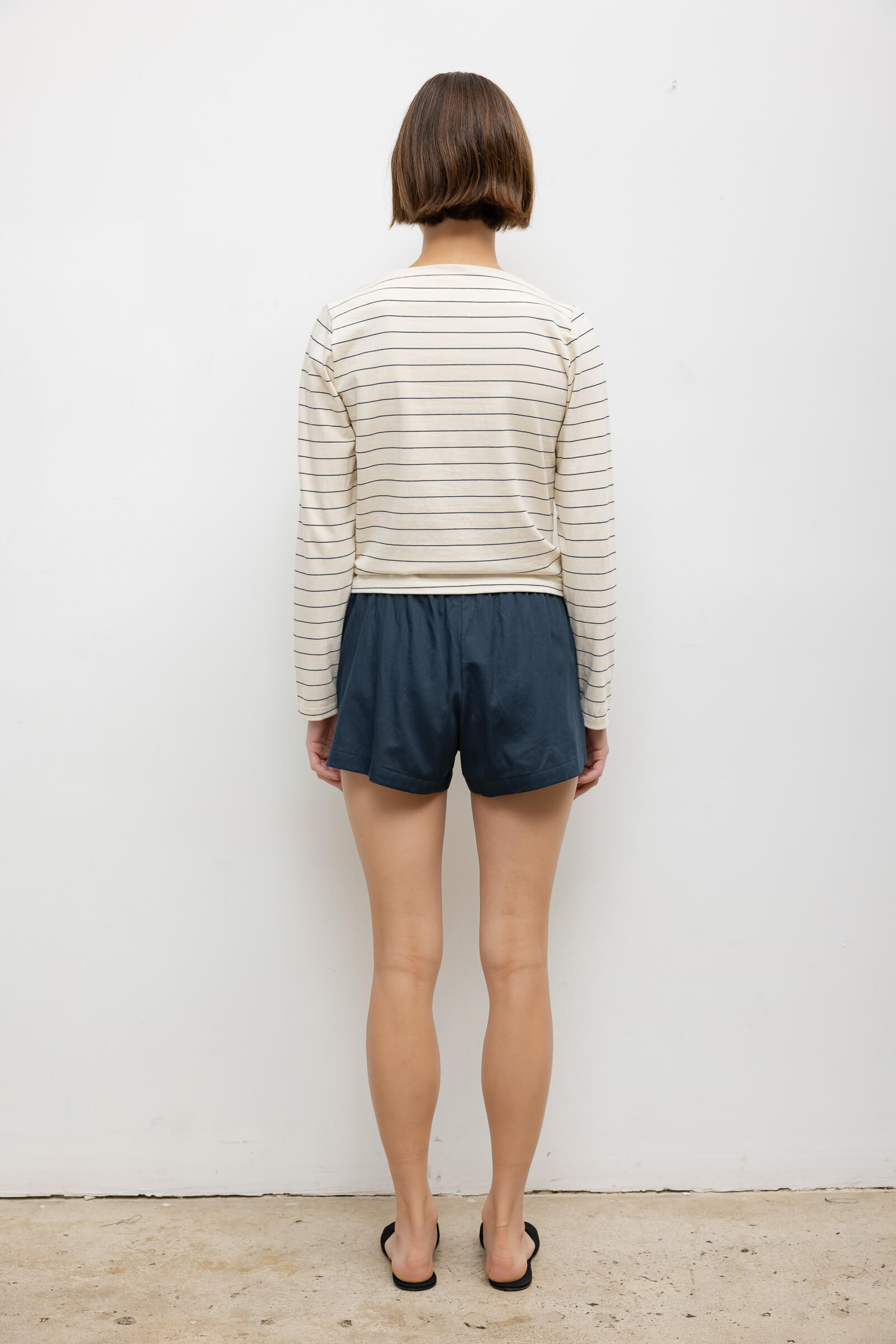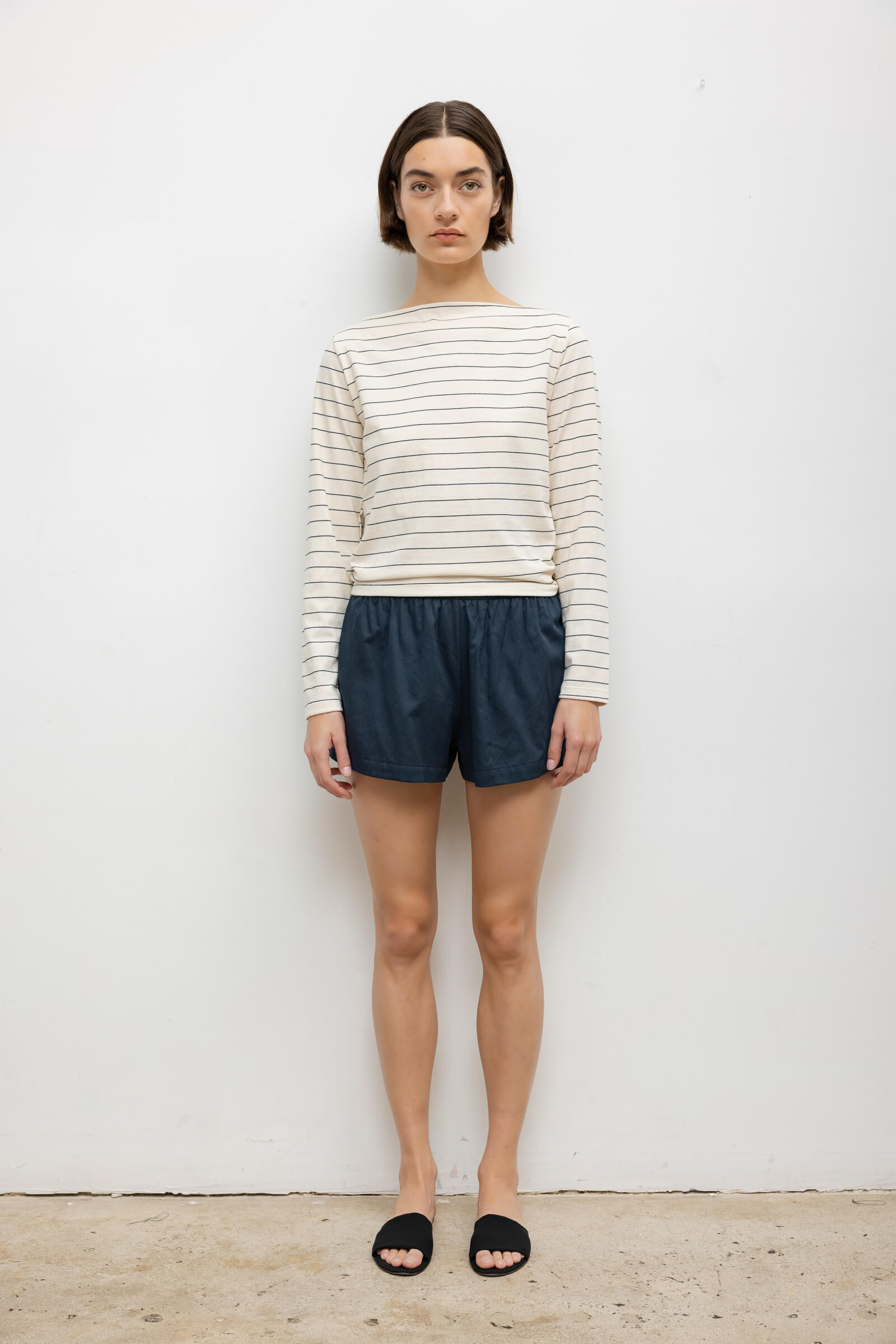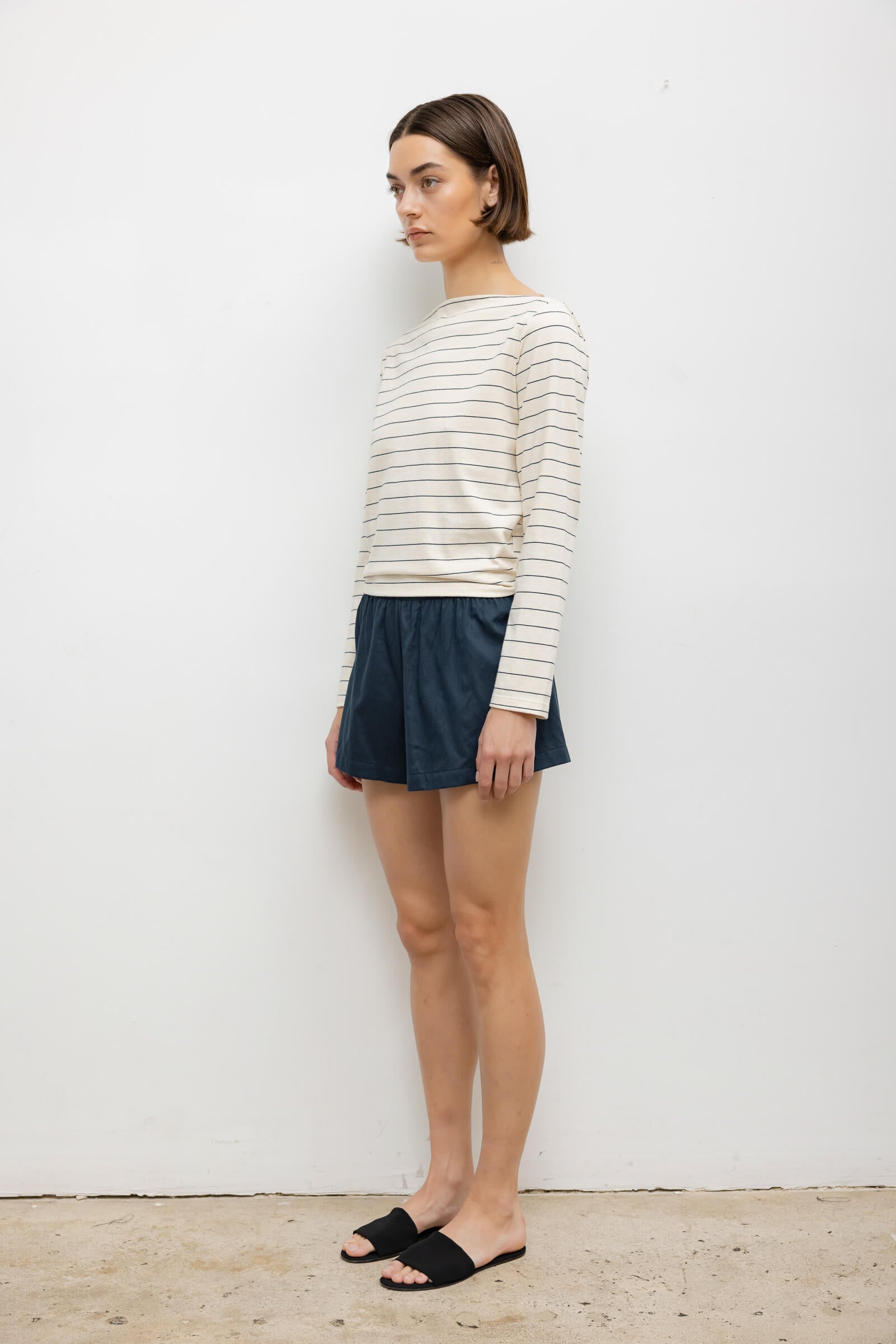 Our no. 1 bestseller, The Margo, reimagined as a classic boatneck top. The Margo Stripe Long Sleeve boatneck is a timeless, long sleeve t-shirt that strikes the perfect balance between a tailored and relaxed silhouette.
