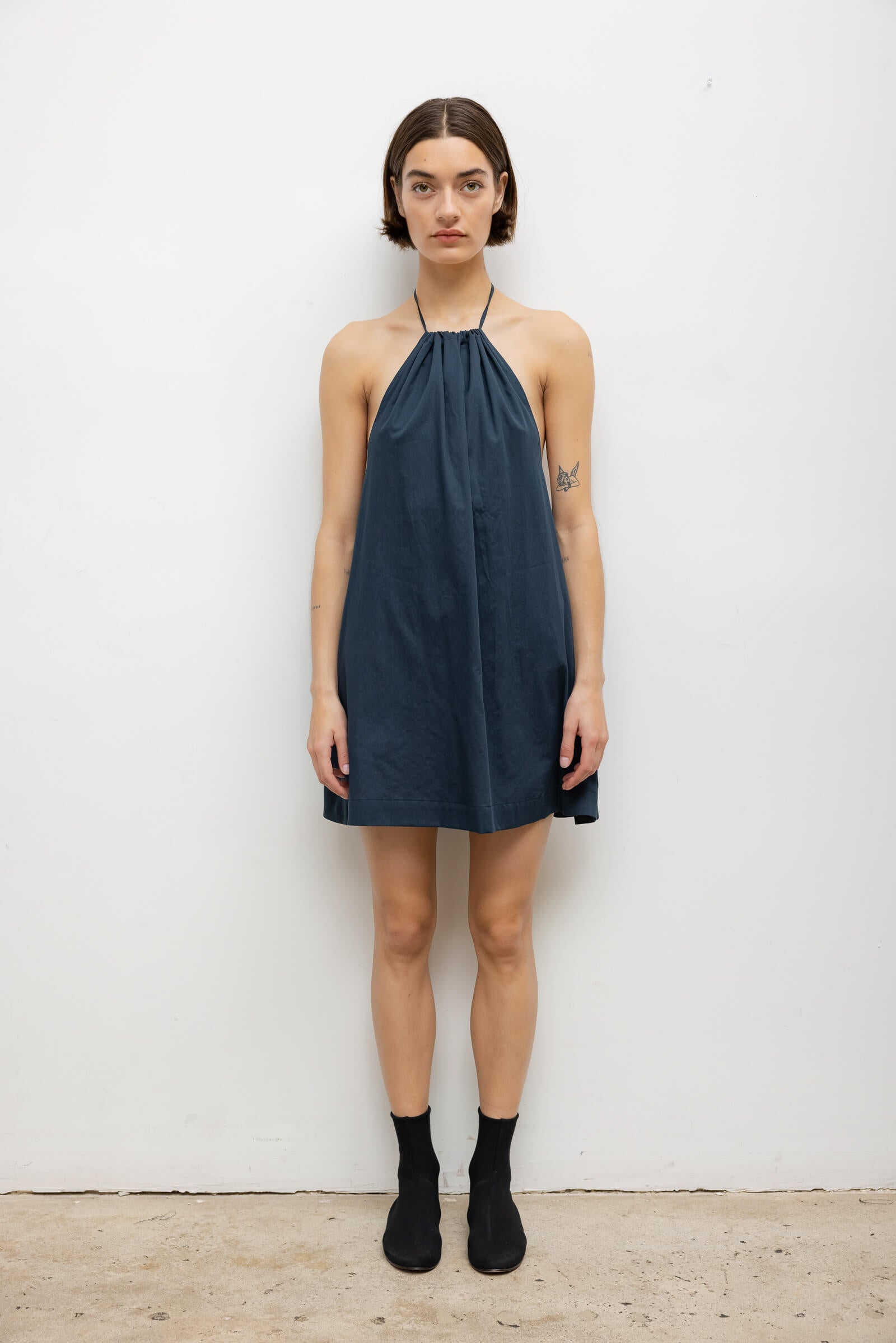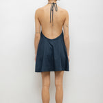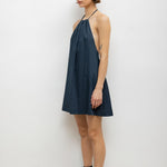 Cut in our bed sheet feel Yoko Cotton, The Yoko Halter Mini Dress features an adjustable, gathered halter neckline, low back, and a swinging mini length.